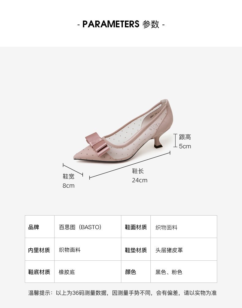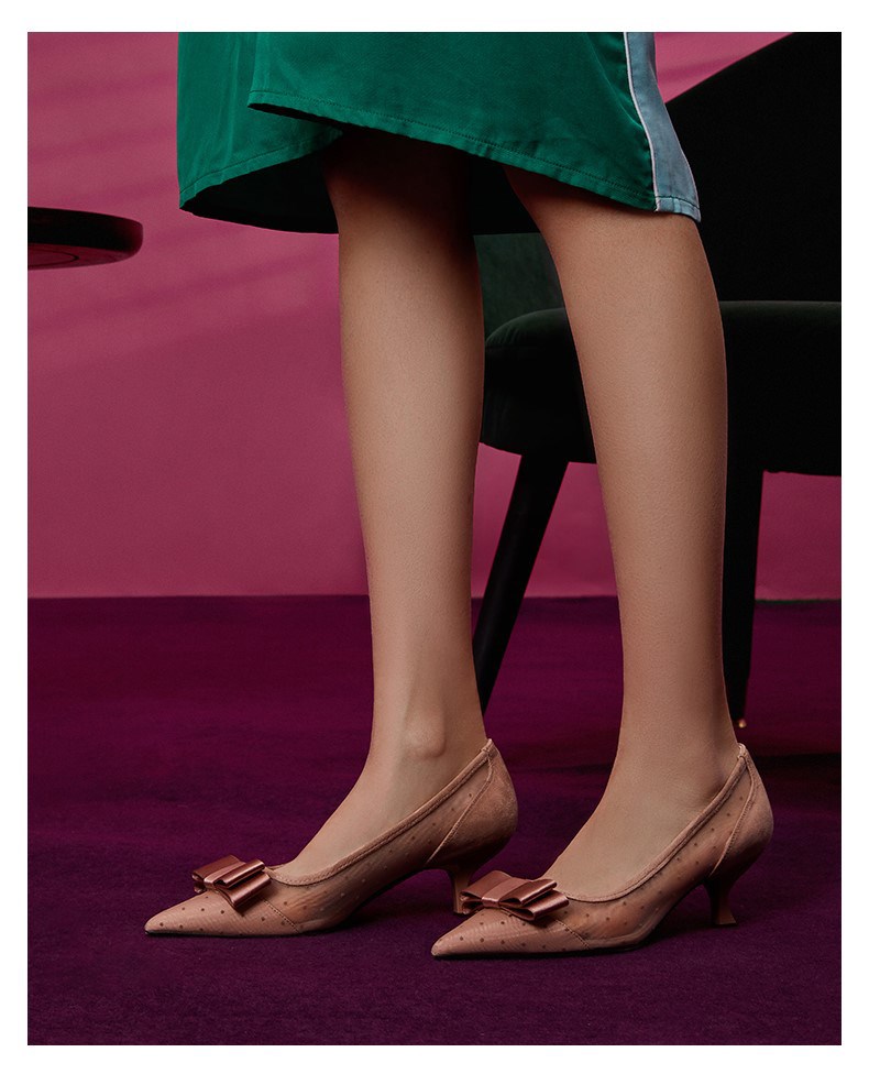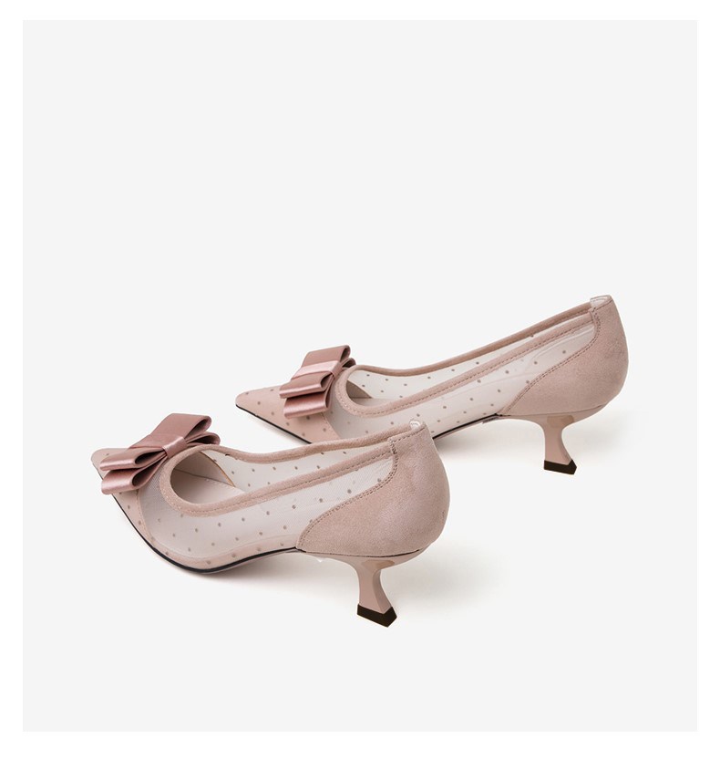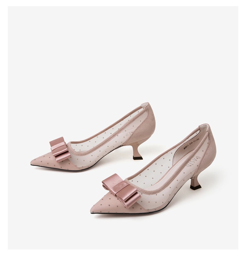 | 鞋头款式:尖头 | 跟高范围:高跟鞋(6-8CM) | 鞋面图案:圆点 | 鞋跟形状:细跟 | 流行元素:蝴蝶结 |