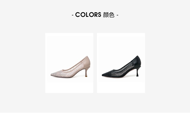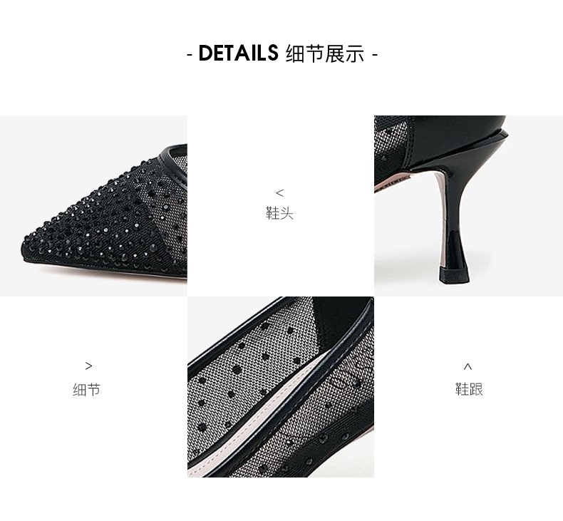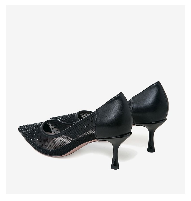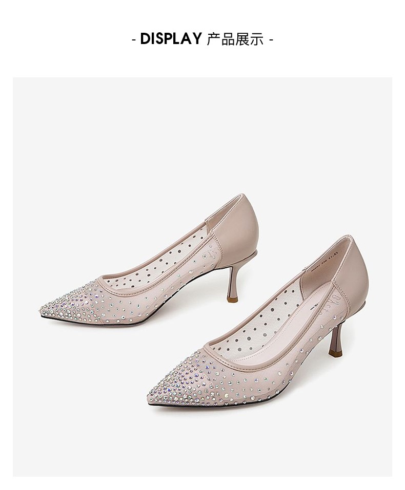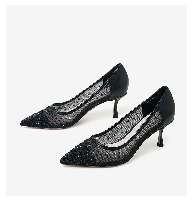 | 鞋头款式:尖头 | 跟高范围:高跟鞋(6-8CM) | 鞋面图案:圆点 | 鞋跟形状:细跟 | 流行元素:圆点闪钻 |