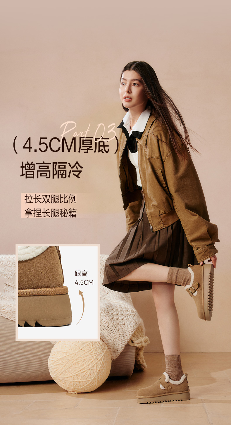 | 色系:棕色 | 跟高数值:4.5CM | 适用人群:女子 | 性别:女子 | 里料材质:人造长毛绒 |