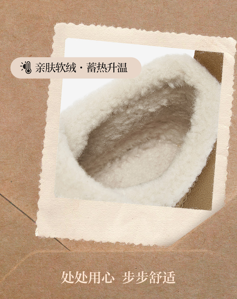 | 性别:女子 | 靴筒筒面材质:牛剖层皮革 | 里料材质:人造长毛绒 | 制鞋工艺:胶贴皮鞋 | 鞋垫材质:人造长毛绒 |
