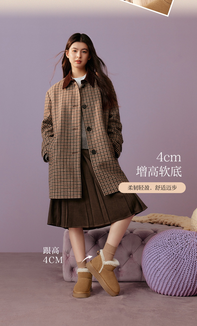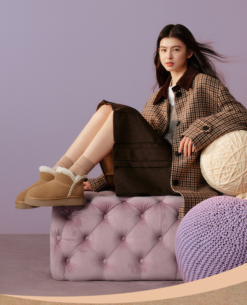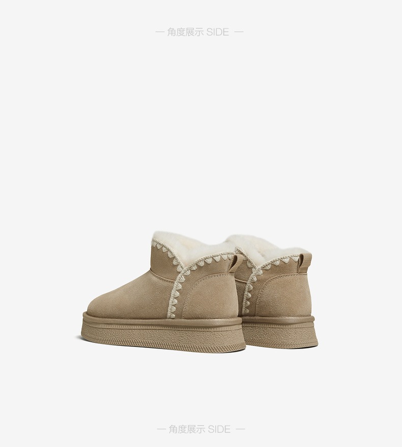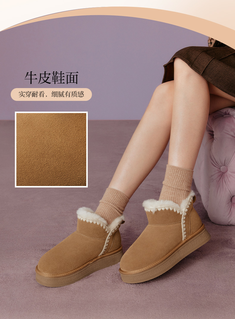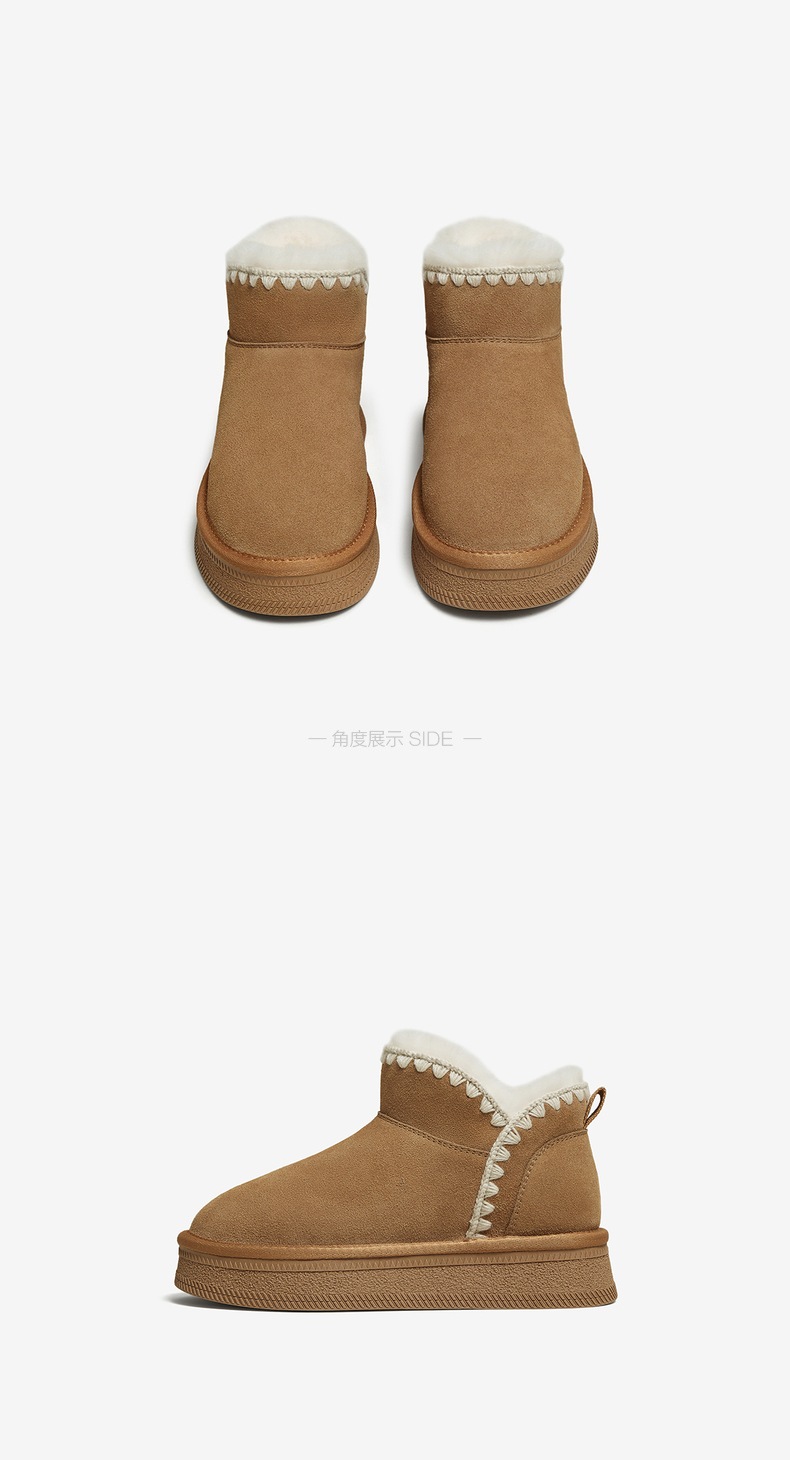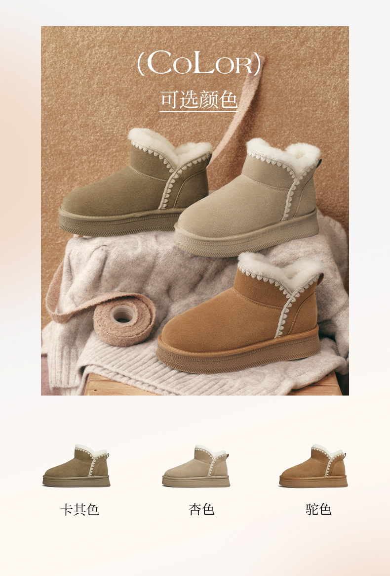 | 帮面材质:牛剖层革 | 配跟:无 | 靴筒口围:34CM | 上市时间:2025年冬季 | 鞋类流行款式:雪地靴 |