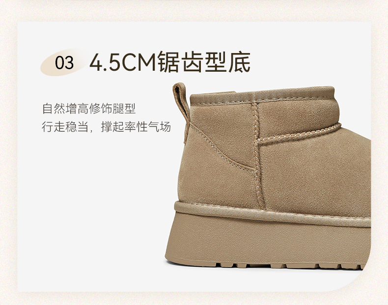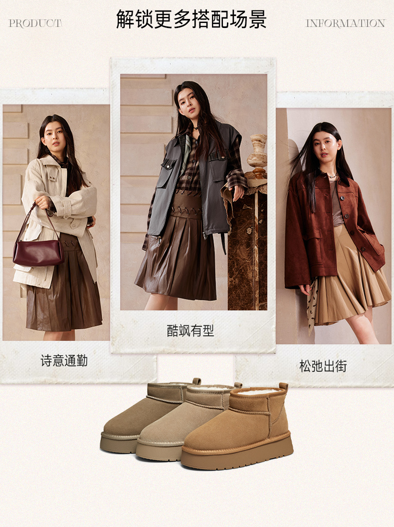 | 帮面材质:牛剖层革 | 配跟:无 | 靴筒口围:36CM | 上市时间:2025年冬季 | 鞋类流行款式:雪地靴 |