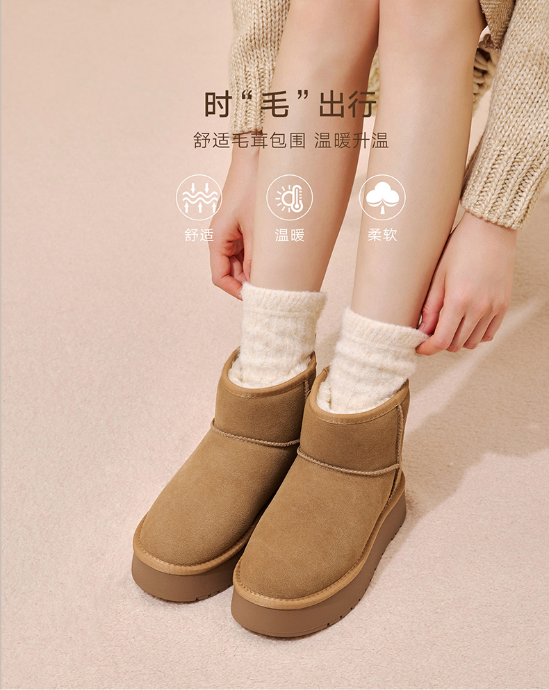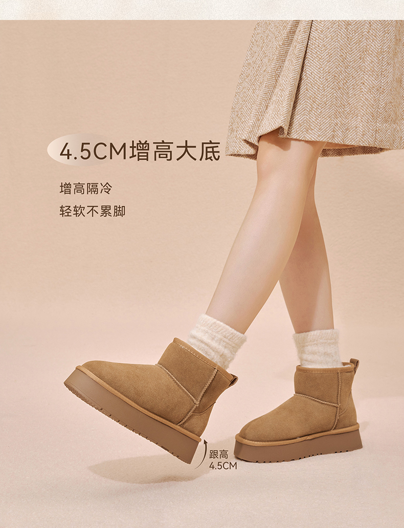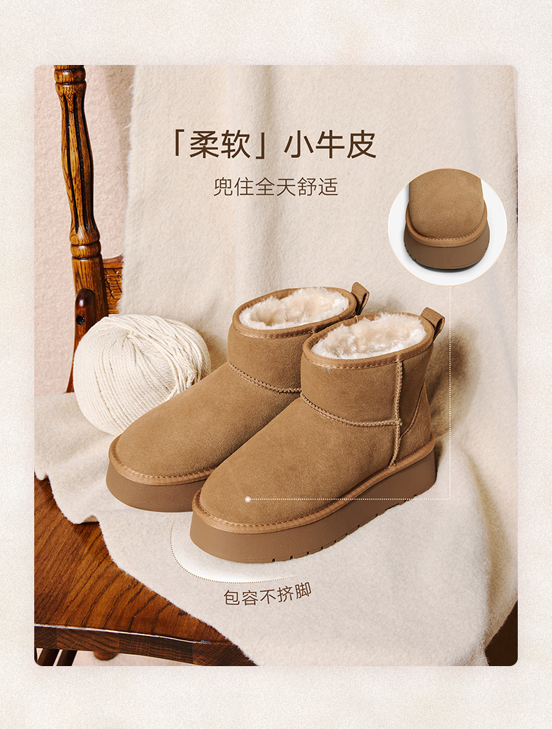 | 帮面材质:牛剖层革 | 配跟:无 | 靴筒口围:38CM | 上市时间:2025年冬季 | 鞋类流行款式:雪地靴 |