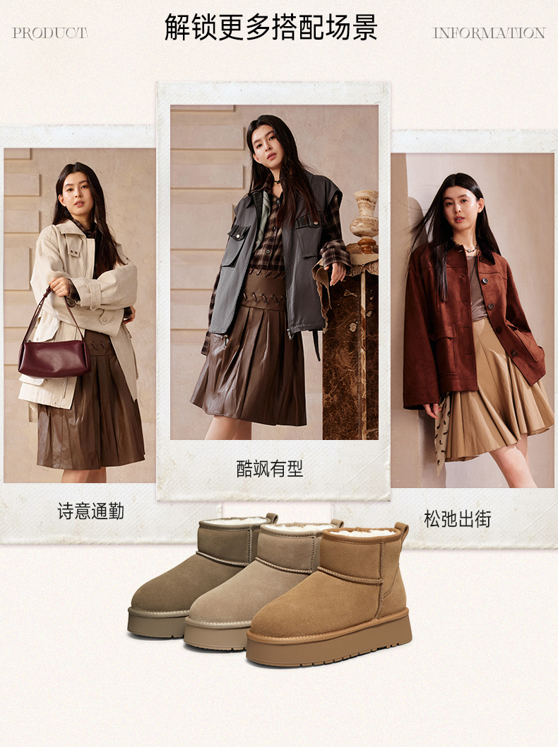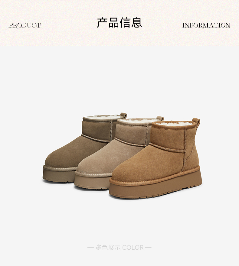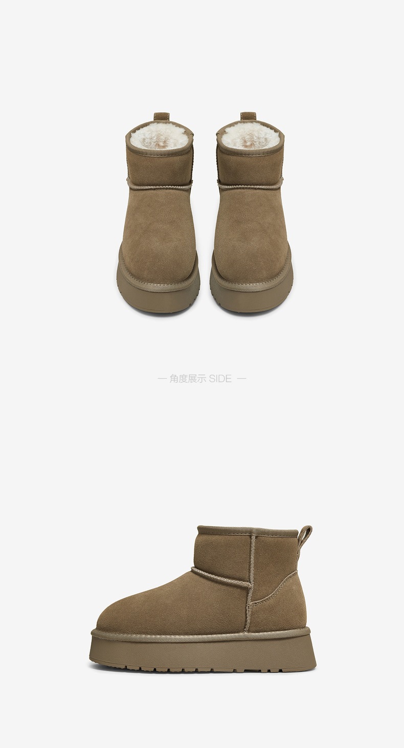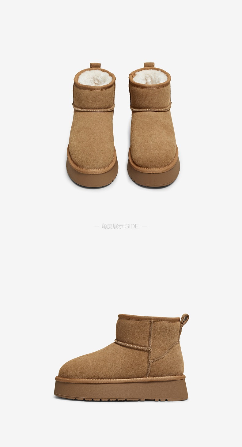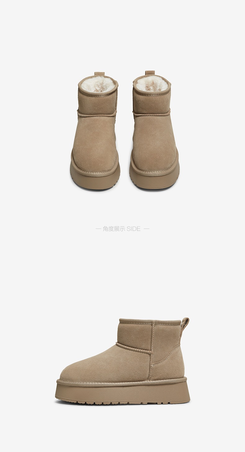 | 帮面材质:牛剖层革 | 配跟:无 | 靴筒口围:38CM | 上市时间:2025年冬季 | 鞋类流行款式:雪地靴 |