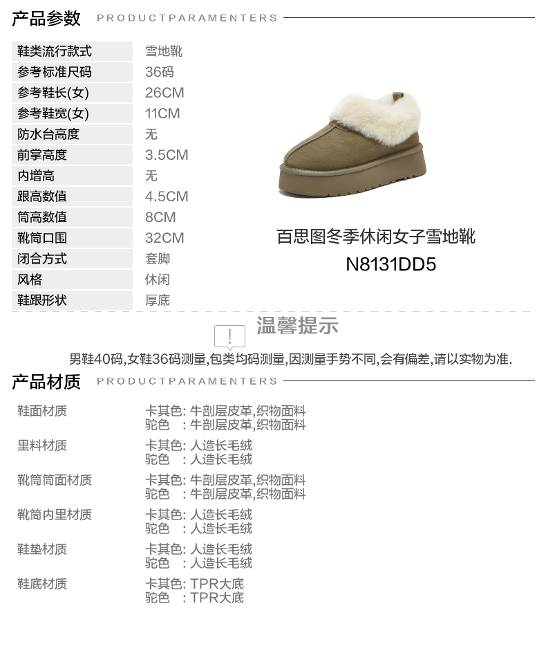 | 款式季节:冬季 | 前掌高度:3.5CM | 皮质特征:无 | 防水台高度:无 |