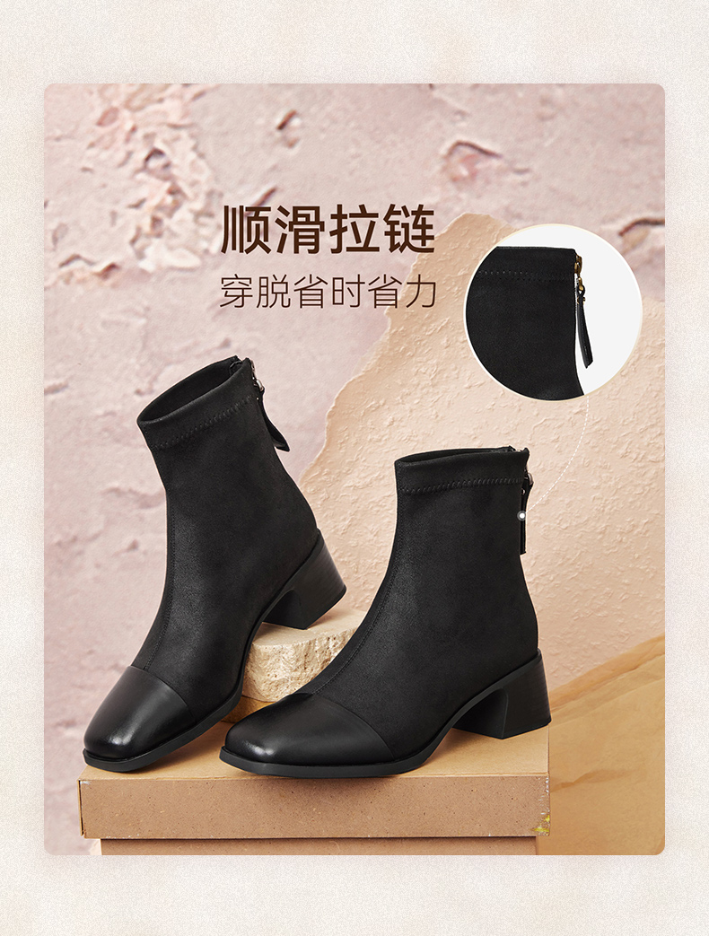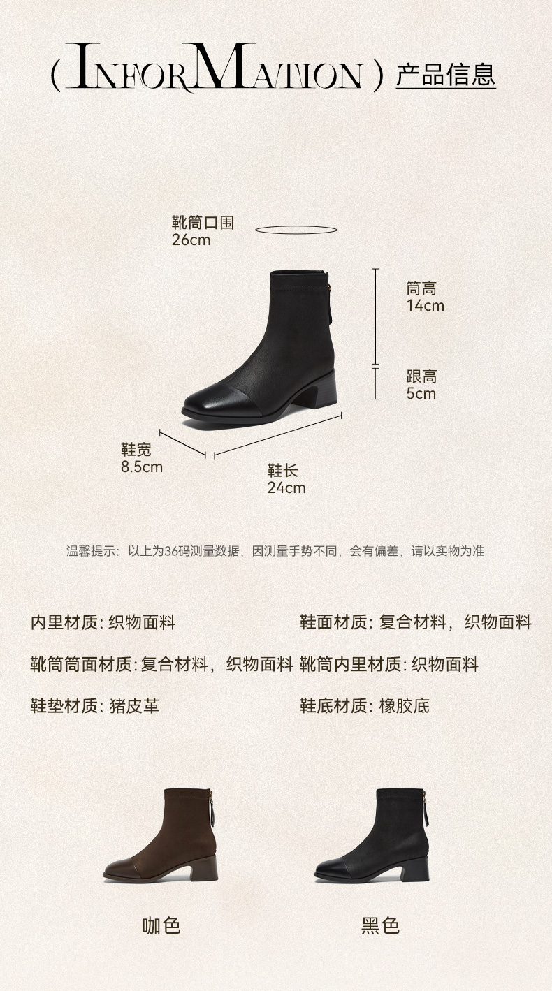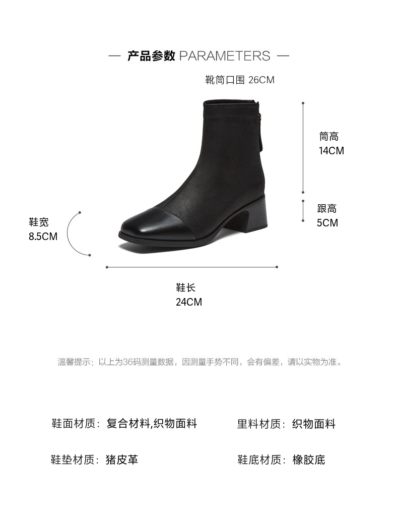 | 鞋底材质:橡胶底 | 靴筒内里材质:织物面料 | 内增高:无 | 鞋面材质:织物面料复合材料 | 闭合方式:后拉链 |