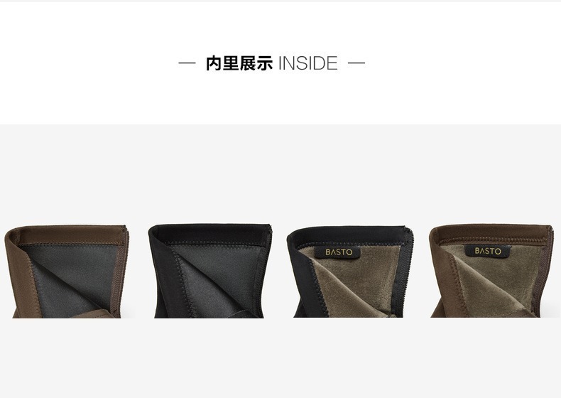 | 鞋底材质:橡胶发泡底 | 靴筒内里材质:人造短毛绒 | 内增高:无 | 鞋面材质:PU革织物面料 | 闭合方式:后拉链 |