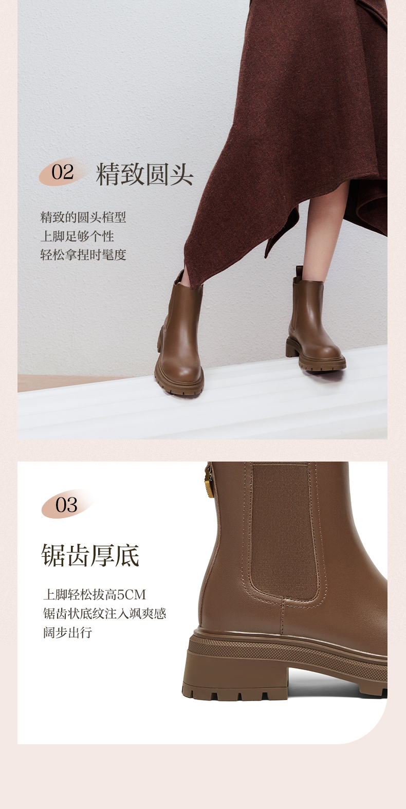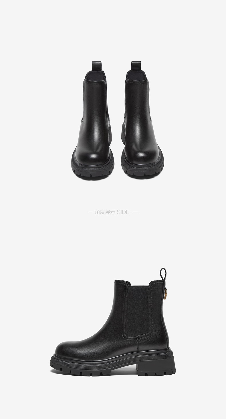 | 鞋类流行款式:短靴 | 鞋头款式:圆头 | 执行标准:舒适上班鞋Q/LR001-2023 | 跟高范围:中跟鞋(3-5CM) | 鞋面图案:纯色 |