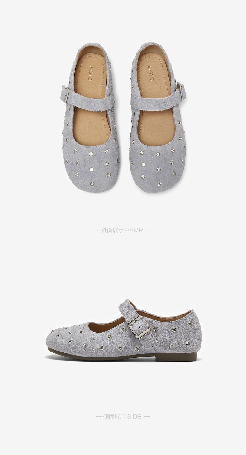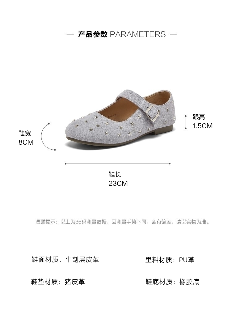 | 鞋头款式:圆头 | 鞋底材质:橡胶底 | 内增高:无 | 鞋跟形状:平跟 | 鞋面材质:牛剖层皮革 |