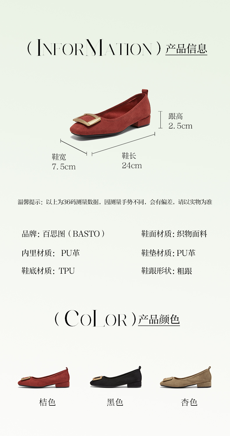 | 上市时间:2026年春季 | 鞋类流行款式:浅口鞋 | 鞋头款式:方头 | 鞋面图案:纯色 | 鞋跟形状:粗跟 |