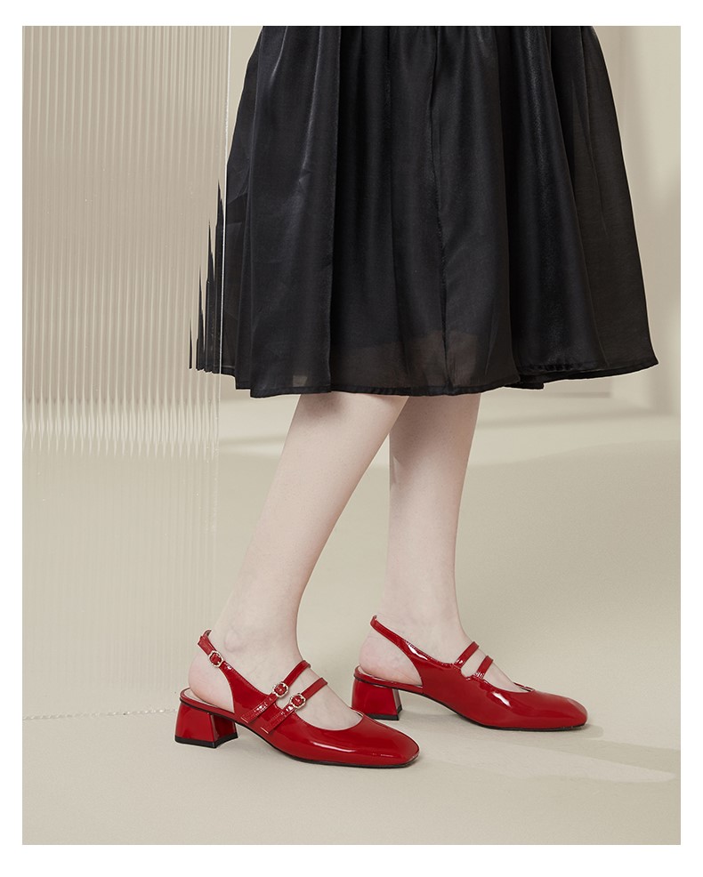 | 鞋头款式:方头 | 鞋底材质:橡胶底 | 鞋面图案:纯色 | 鞋跟形状:粗跟 | 鞋面材质:牛皮革 |