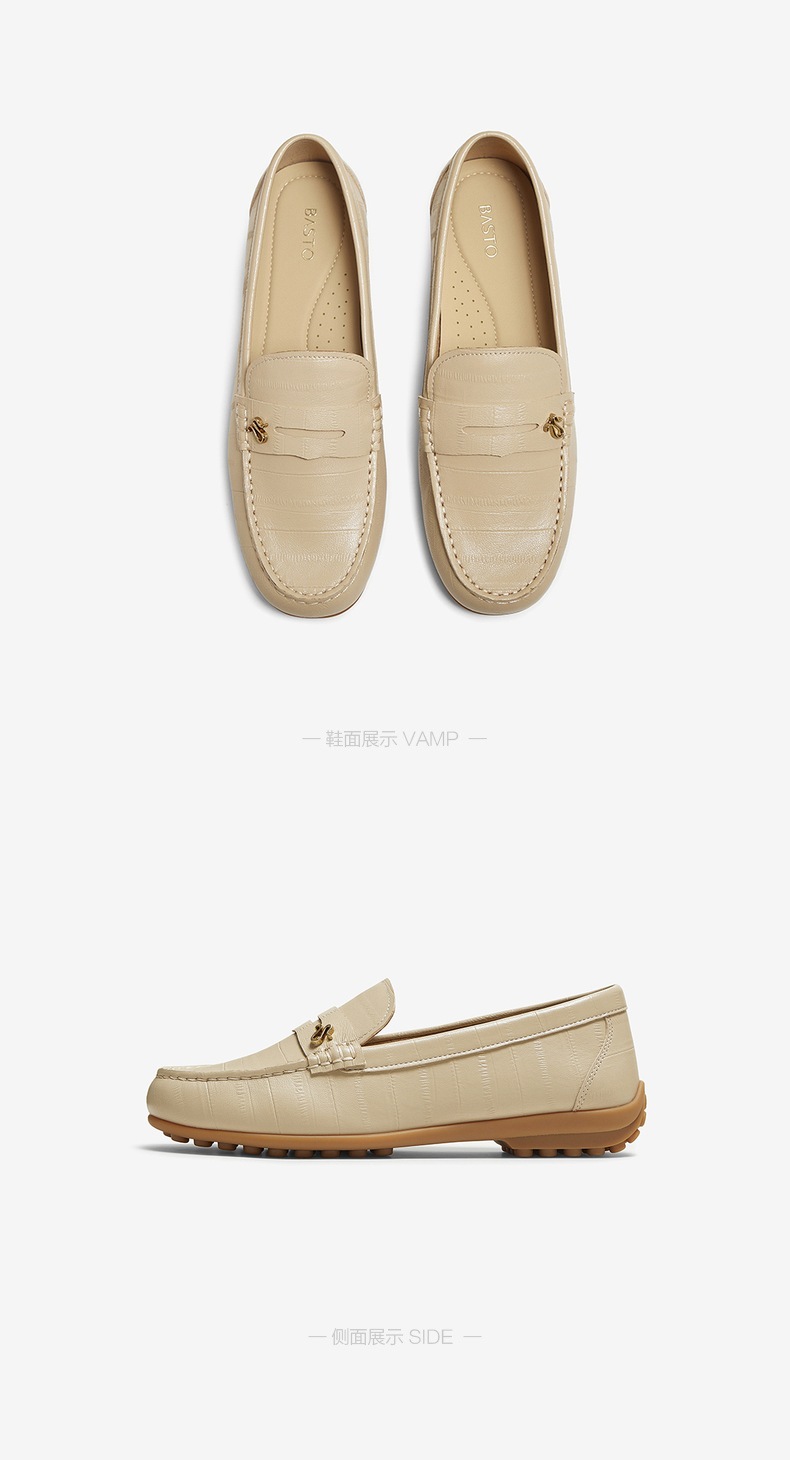 | 配跟:无 | 上市时间:2025年秋季 | 鞋类流行款式:乐福鞋 | 鞋头款式:圆头 | 鞋面图案:纯色 |