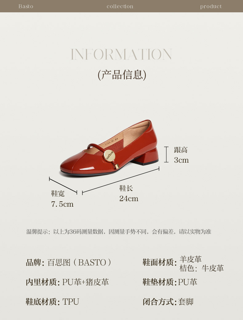 | 皮质特征:无牛皮革 | 前掌高度:无无 | 防水台高度:无无 | 鞋类流行款式:玛丽珍鞋玛丽珍鞋 |