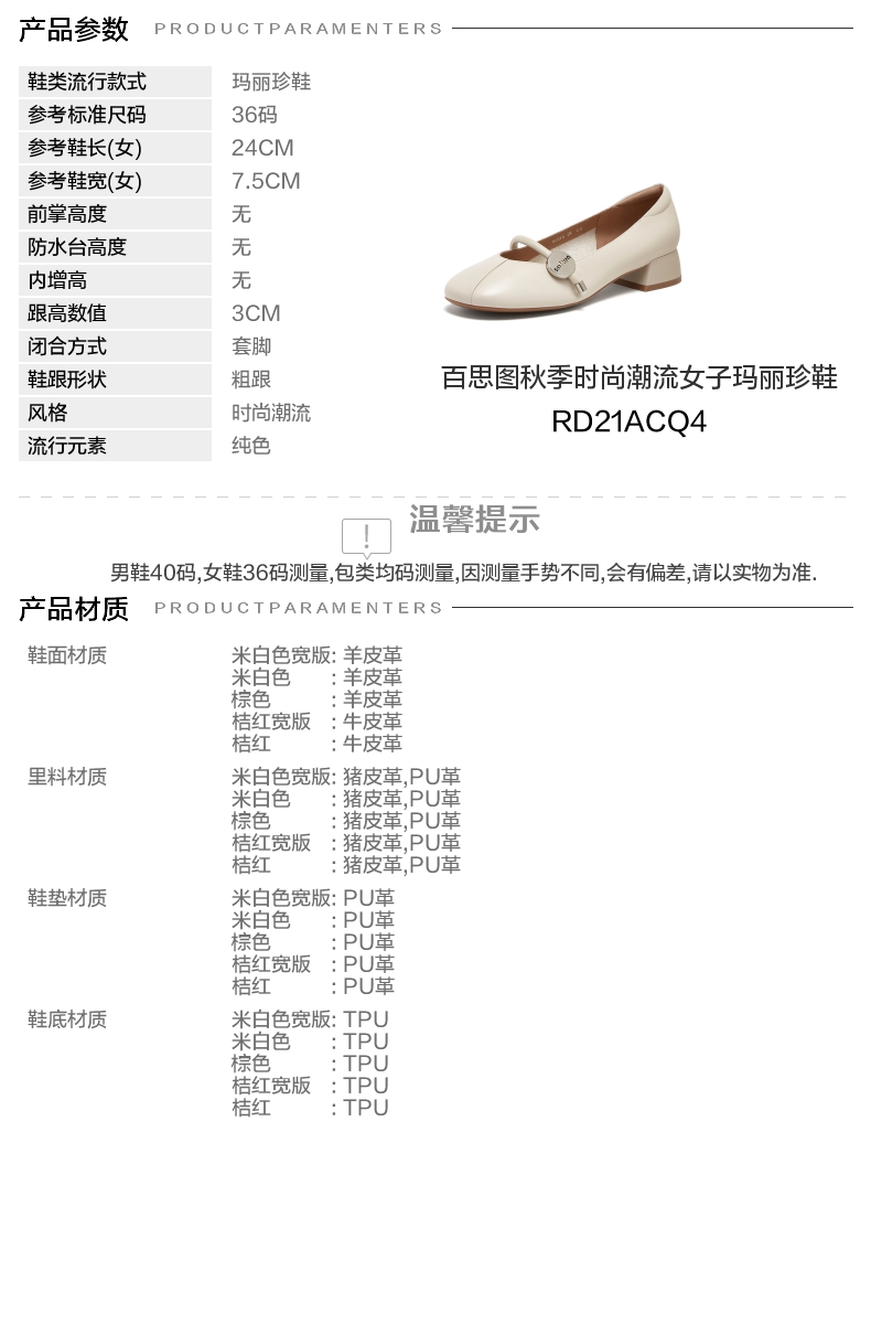 | 皮质特征:牛皮革无 | 前掌高度:无无 | 防水台高度:无无 | 鞋类流行款式:玛丽珍鞋玛丽珍鞋 |