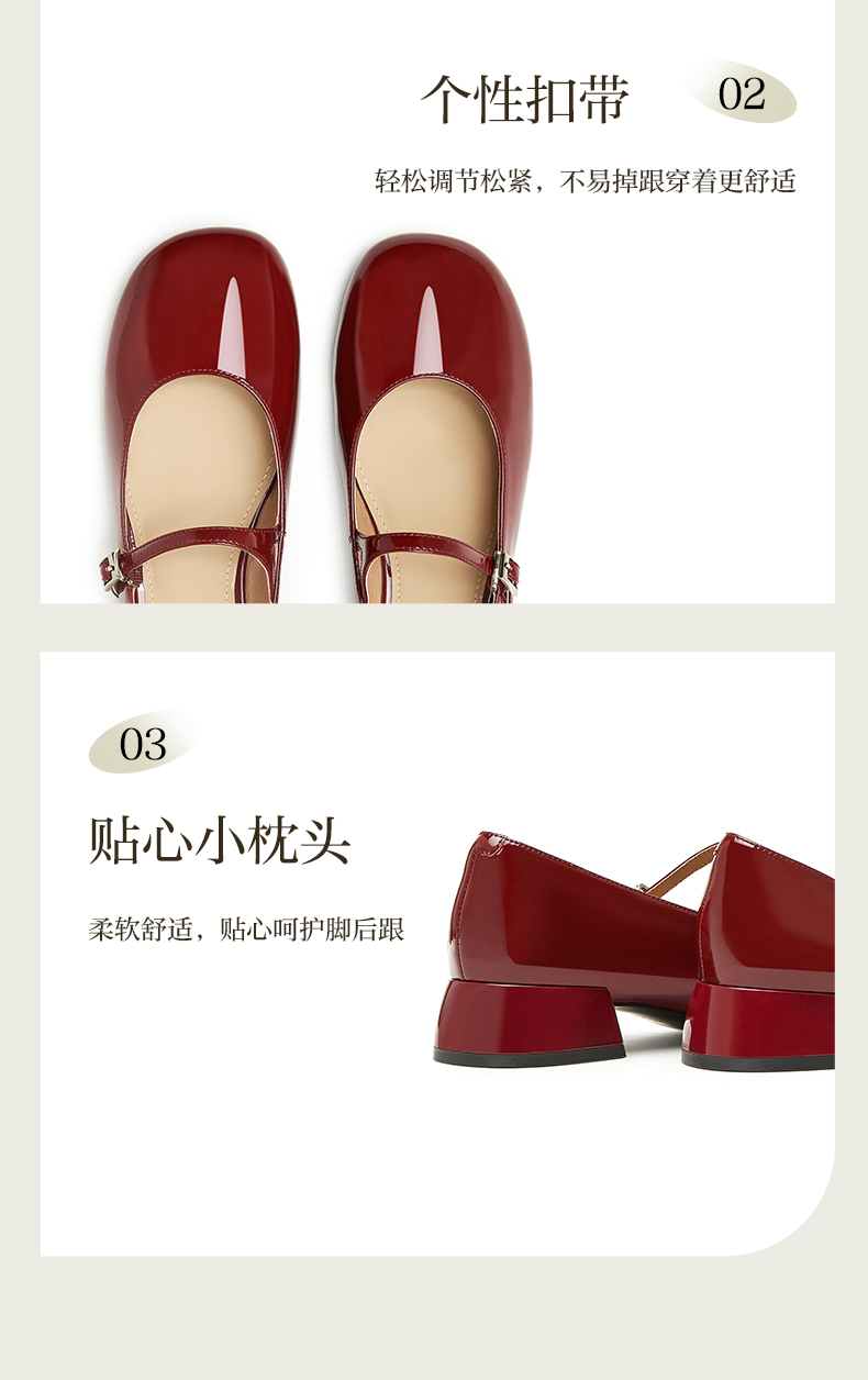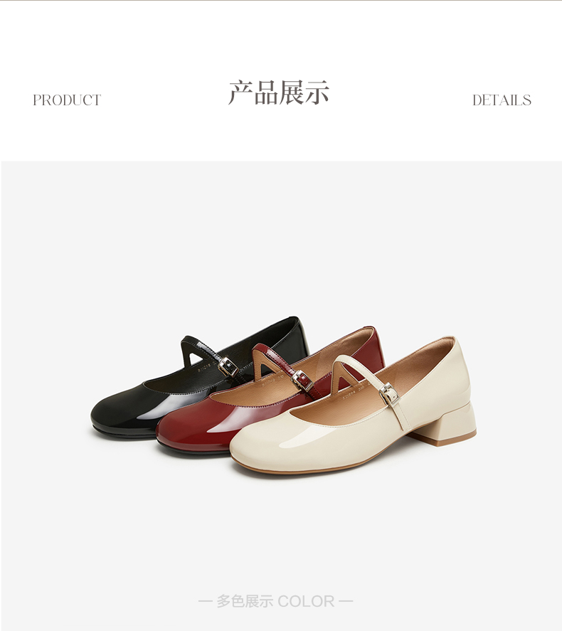 | 皮质特征:牛皮革 | 前掌高度:无 | 防水台高度:无 | 鞋类流行款式:玛丽珍鞋 |