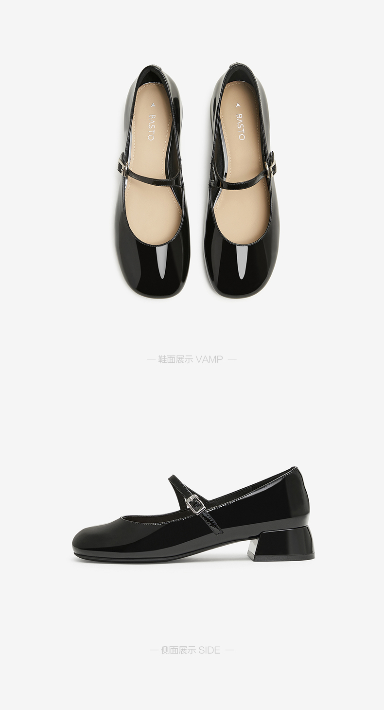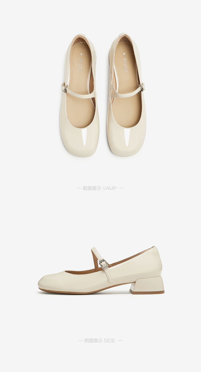 | 皮质特征:牛皮革 | 前掌高度:无 | 防水台高度:无 | 鞋类流行款式:玛丽珍鞋 |