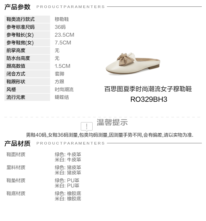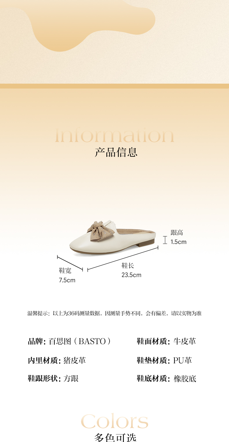 | 皮质特征:牛皮革 | 防水台高度:无 | 鞋类流行款式:穆勒鞋 |
