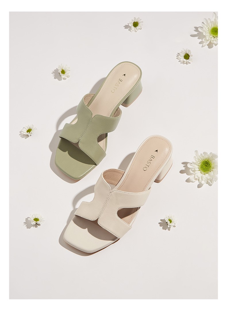 | 鞋头款式:露趾 | 鞋底材质:橡胶底 | 鞋面图案:纯色 | 鞋跟形状:粗跟 | 鞋面材质:羊皮革 |