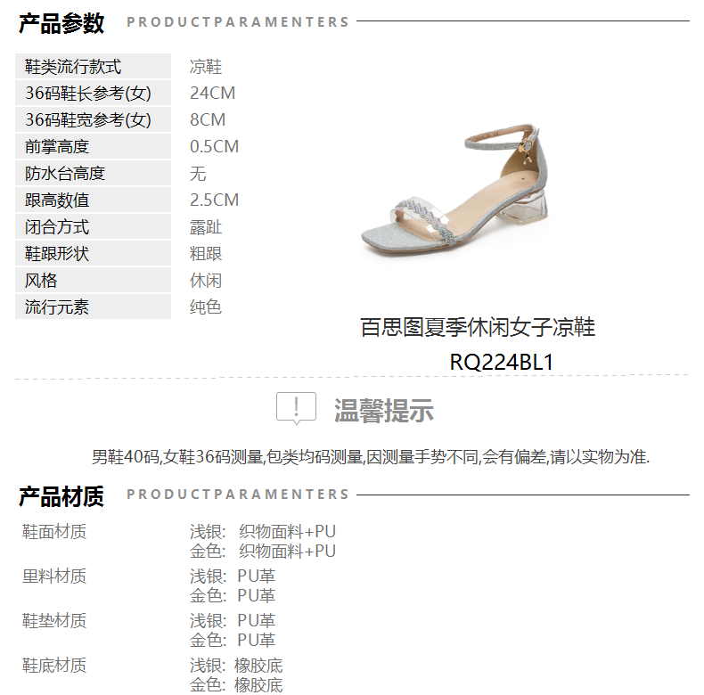 | 流行元素:纯色 | 参考鞋长(女):24CM | 参考鞋宽(女):8CM | 闭合方式:露趾 | 风格:休闲 |
