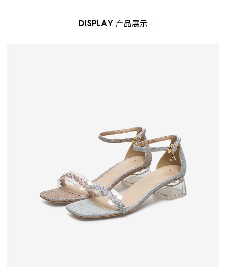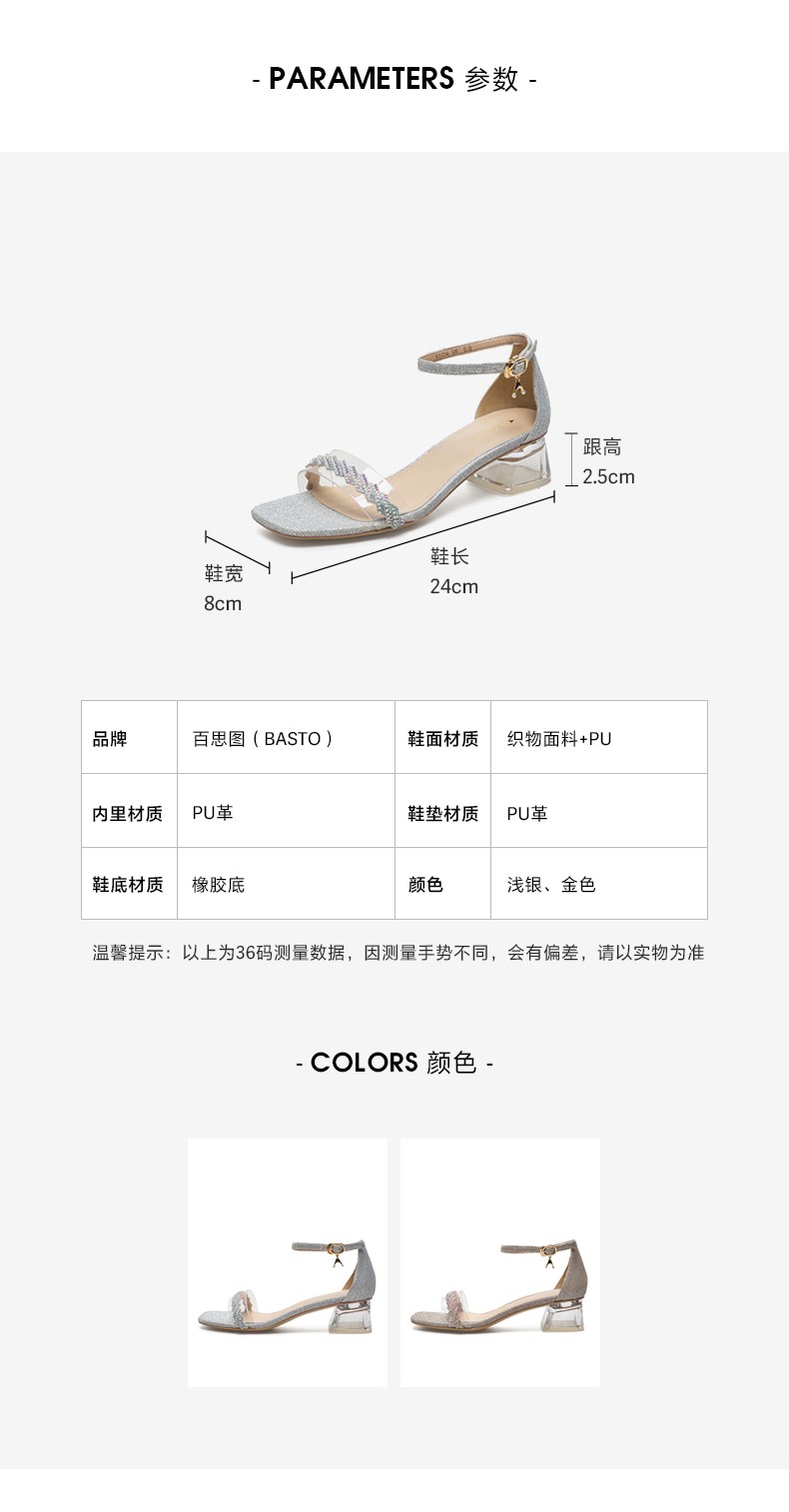 | 鞋头款式:露趾 | 鞋底材质:橡胶底 | 鞋面图案:纯色 | 鞋跟形状:粗跟 | 鞋面材质:PU织物面料 |