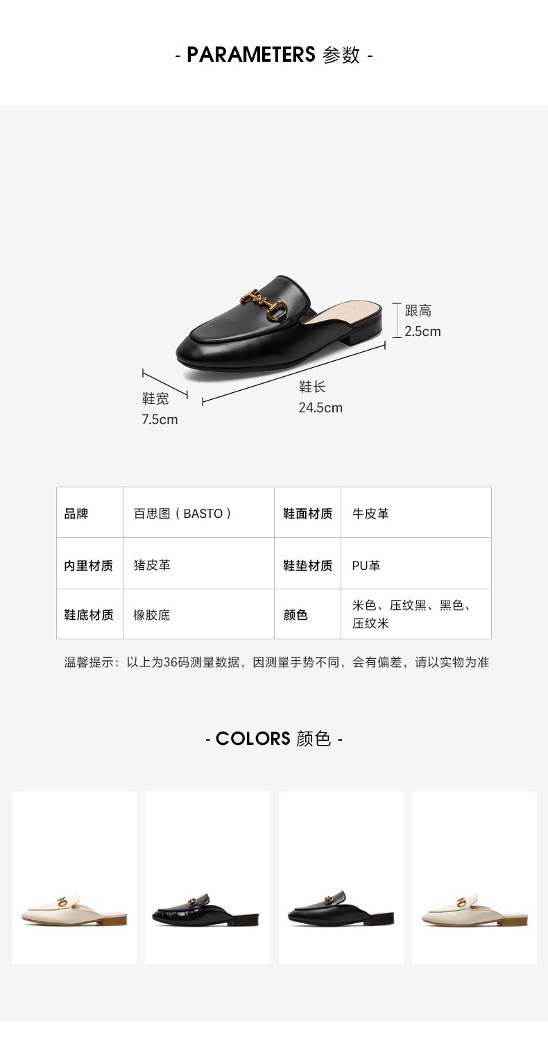 | 前掌高度:无 | 防水台高度:无 | 鞋类流行款式:穆勒鞋 |