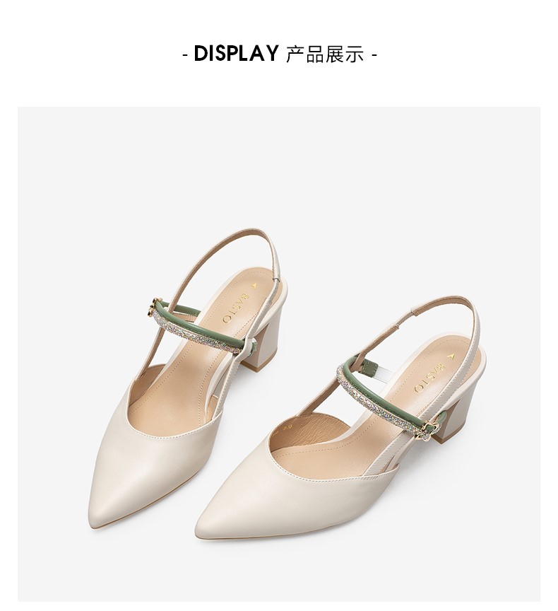 | 鞋头款式:尖头 | 鞋底材质:橡胶底 | 鞋面图案:纯色 | 鞋跟形状:粗跟 | 鞋面材质:牛皮革 |