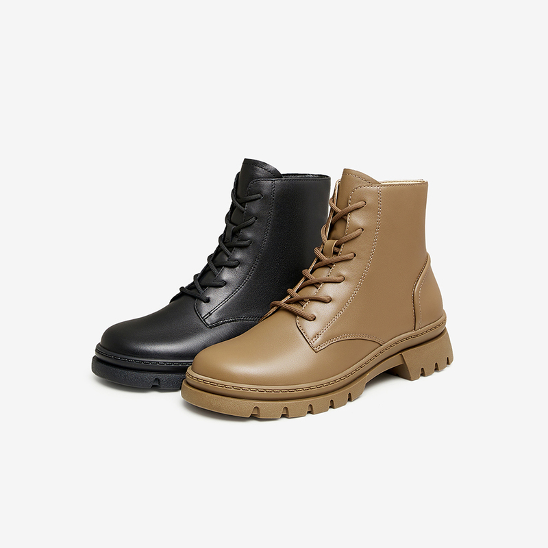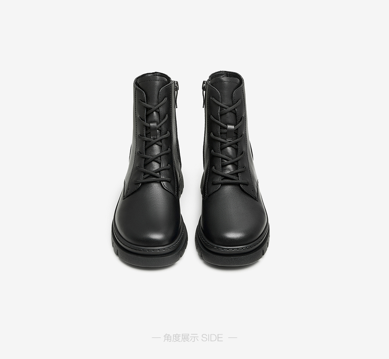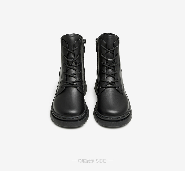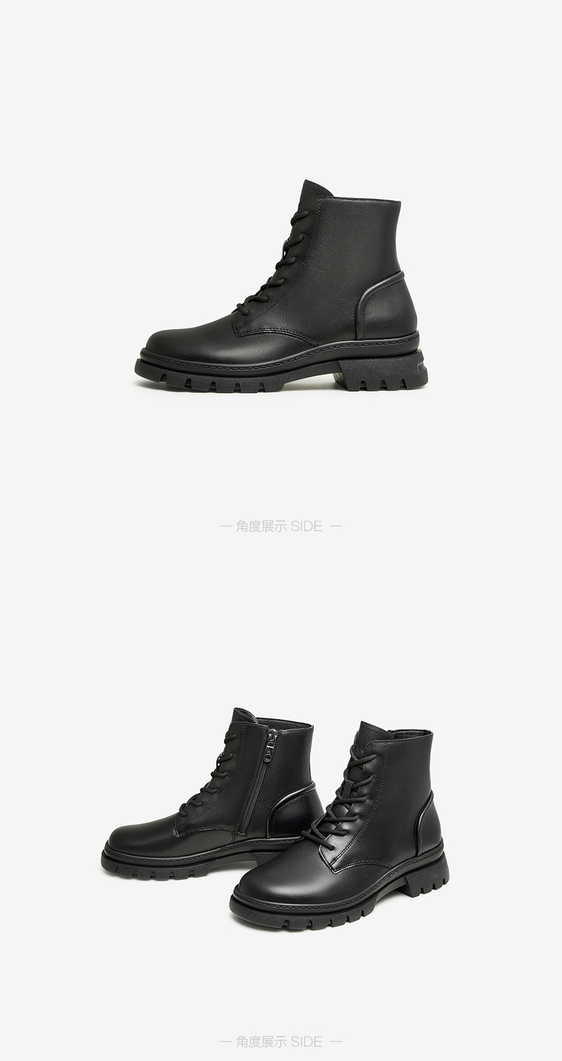 | 鞋类流行款式:马丁靴 | 鞋头款式:圆头 | 执行标准:舒适上班鞋Q/LR001-2023 | 跟高范围:低跟鞋(小于3CM) | 鞋面图案:纯色 |