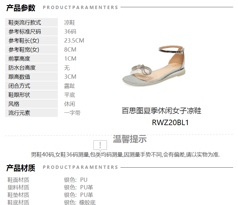 | 跟高数值:3CM | 色系:银色 | 货品来源:自产 | 配跟:无 | 性别:女子 |