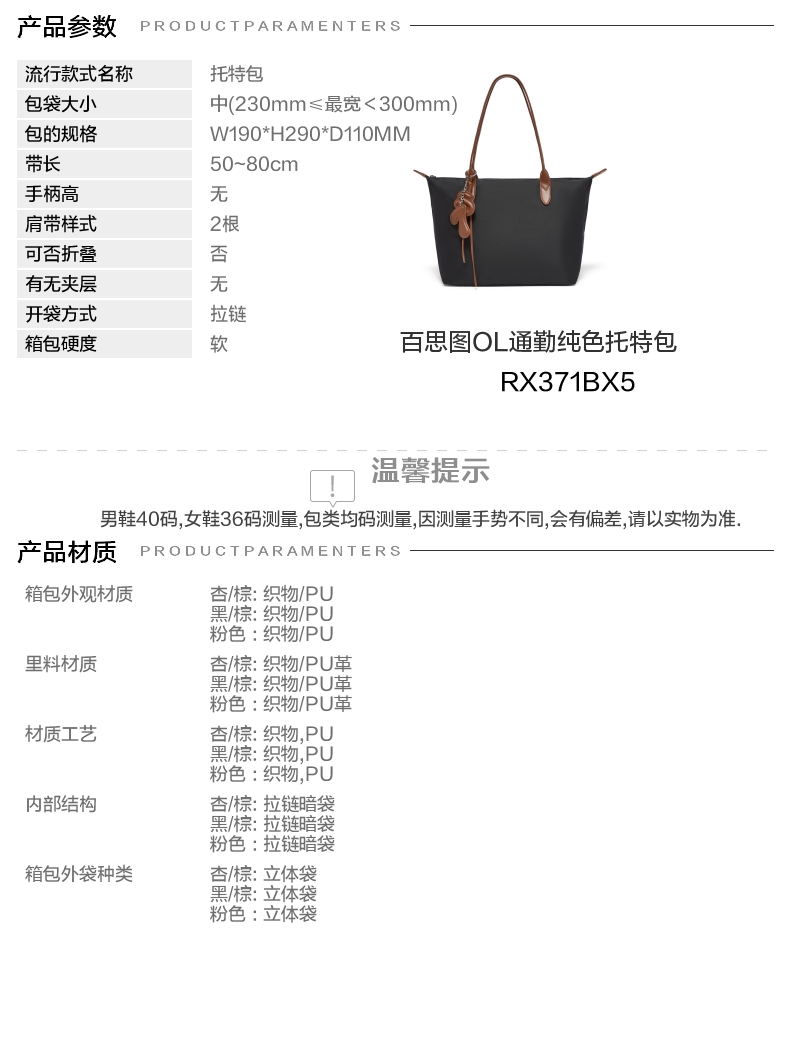 | 色系:黑色 | 适用场景:通勤 | 流行款式名称:托特包 | 开袋方式:拉链 | 性别:女子 |