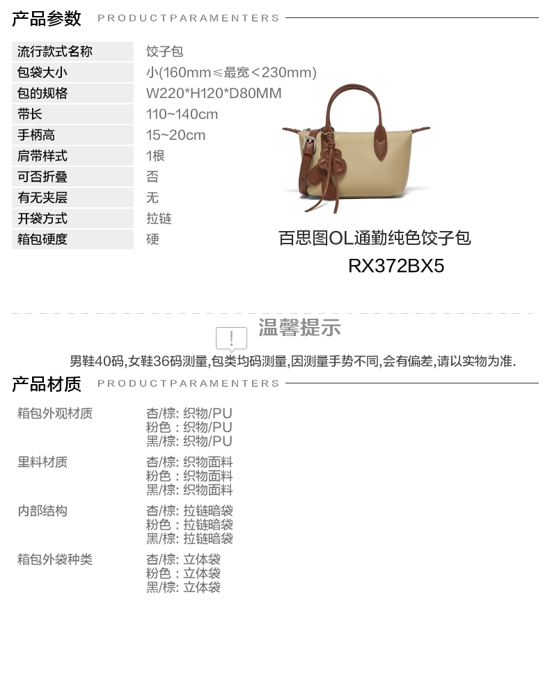 | 适用场景:通勤 | 开袋方式:拉链 | 性别:女子 | 手柄高:15~20cm | 里料材质:织物面料 |