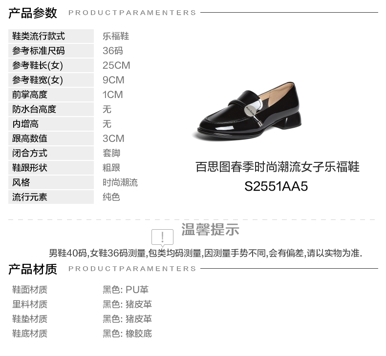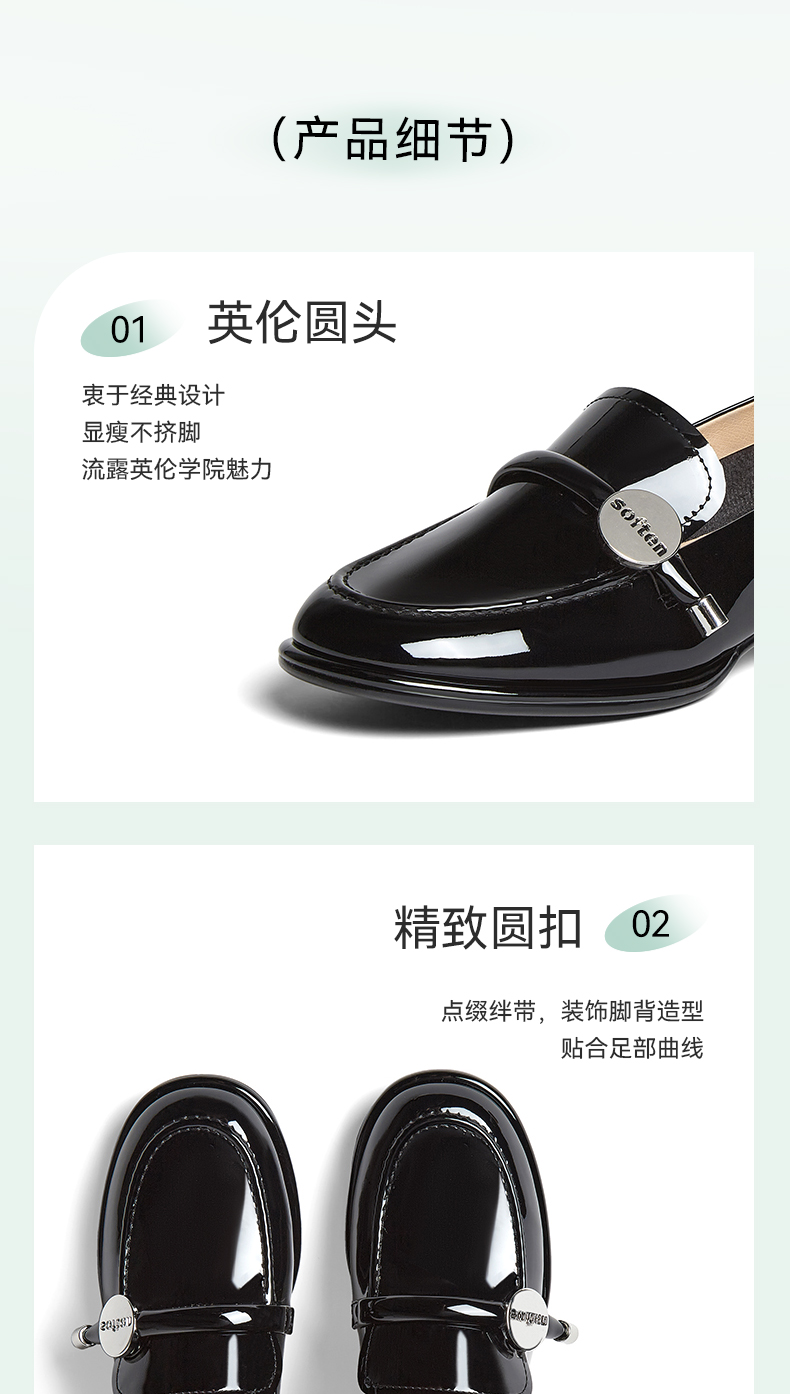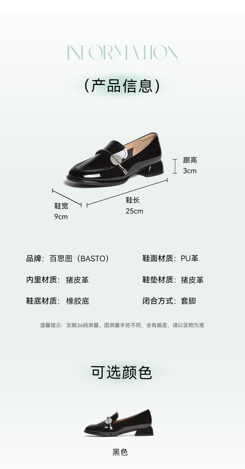 | 配跟:无 | 上市时间:2025年春季 | 鞋类流行款式:乐福鞋 | 鞋头款式:圆头 | 鞋面图案:纯色 |
