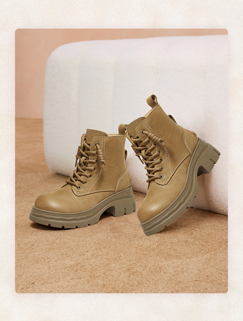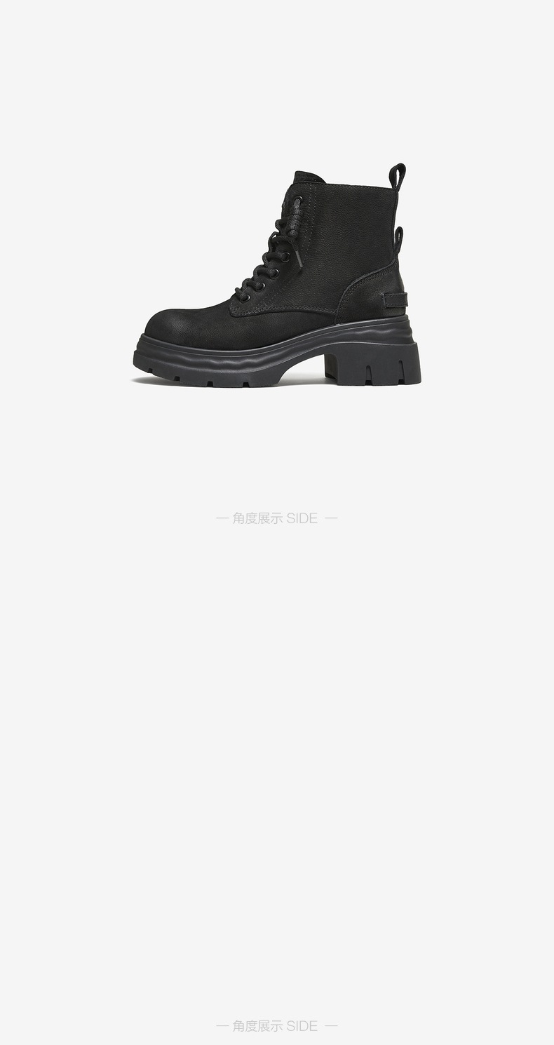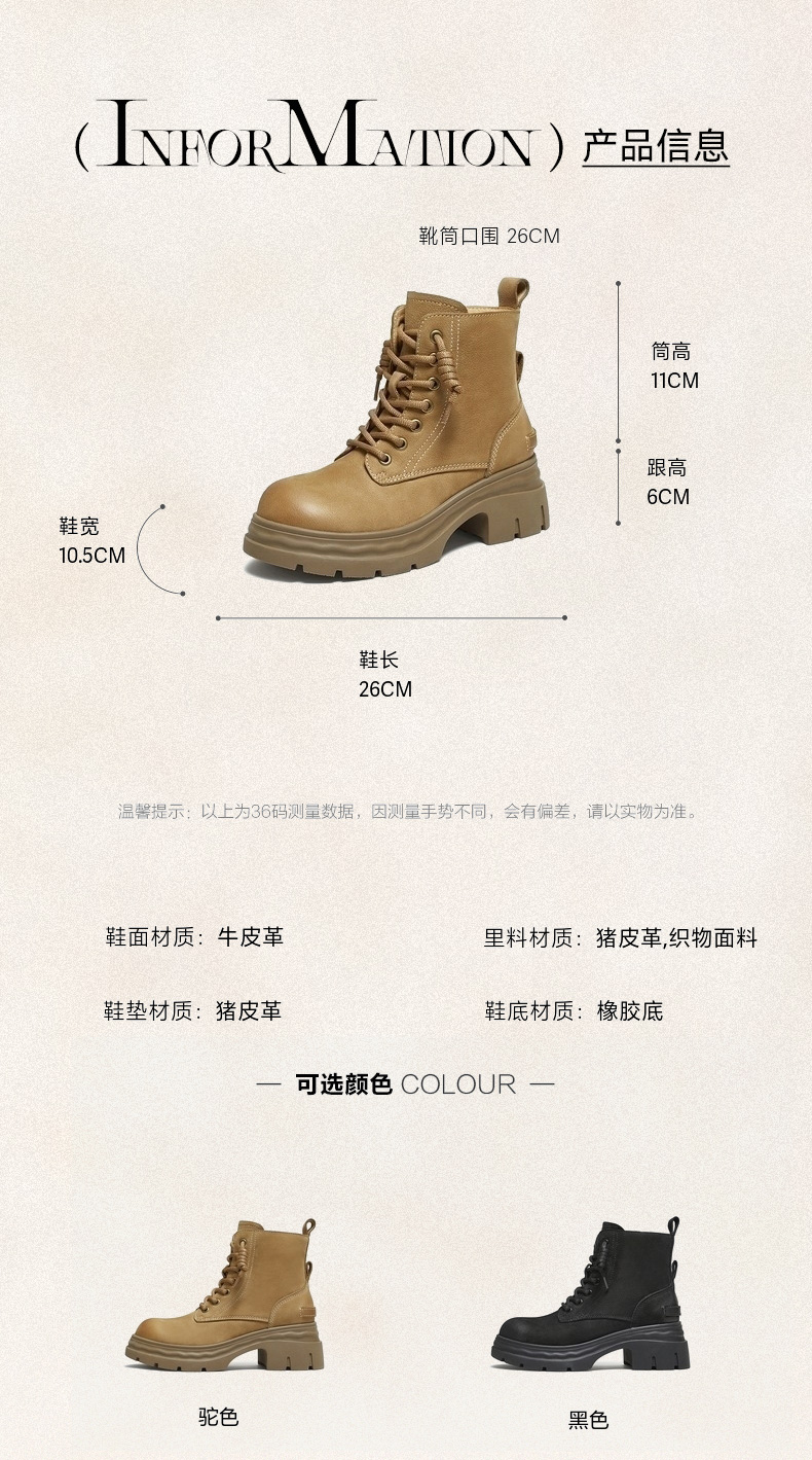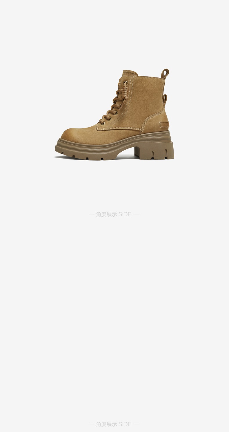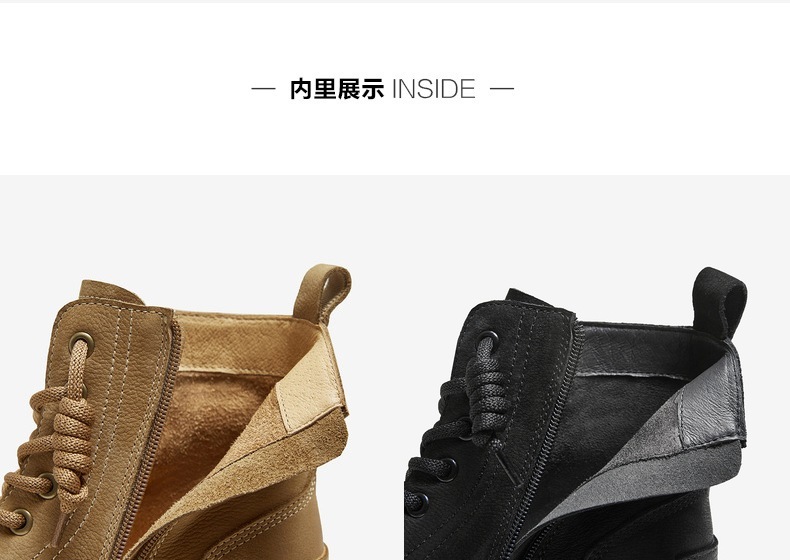 | 鞋底材质:橡胶底 | 靴筒内里材质:织物面料猪皮革 | 内增高:无 | 鞋面材质:牛皮革 | 闭合方式:系带 |