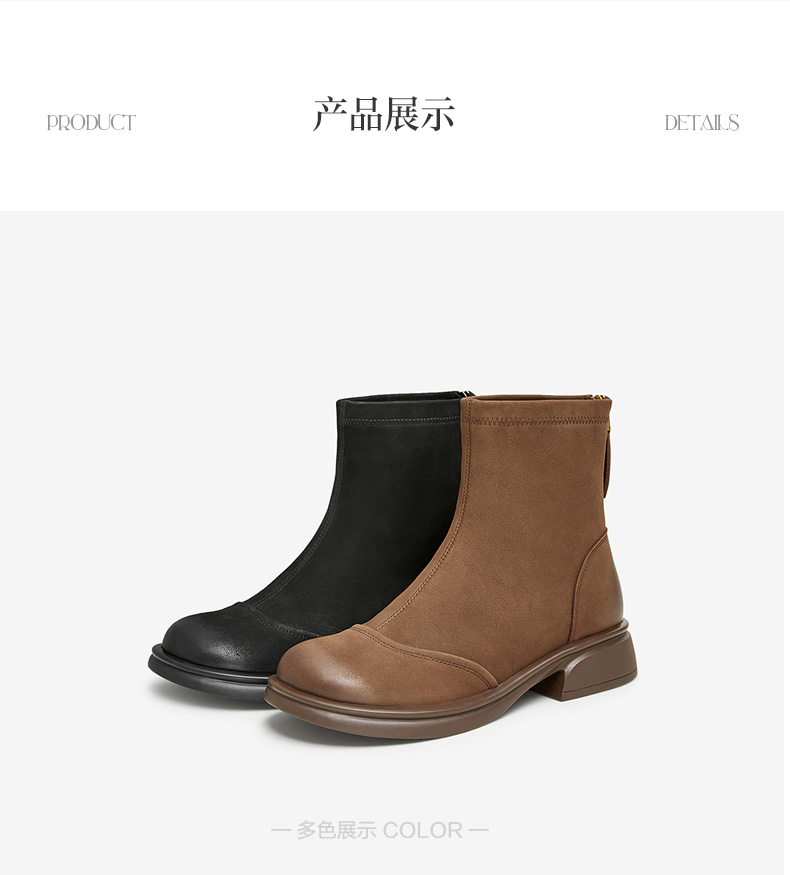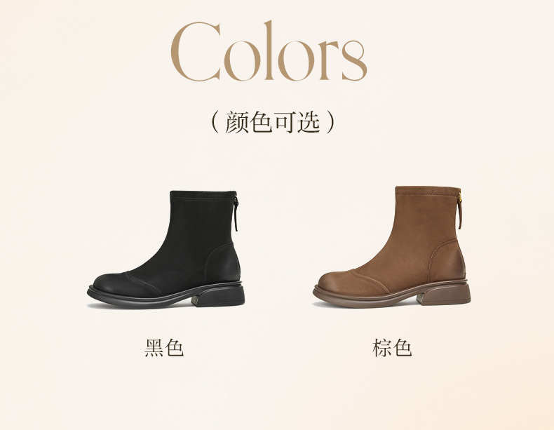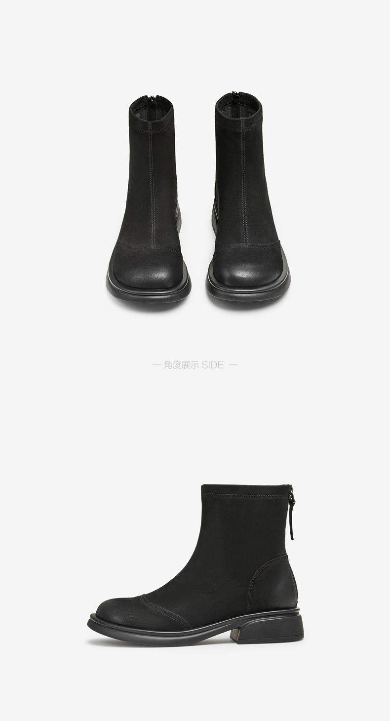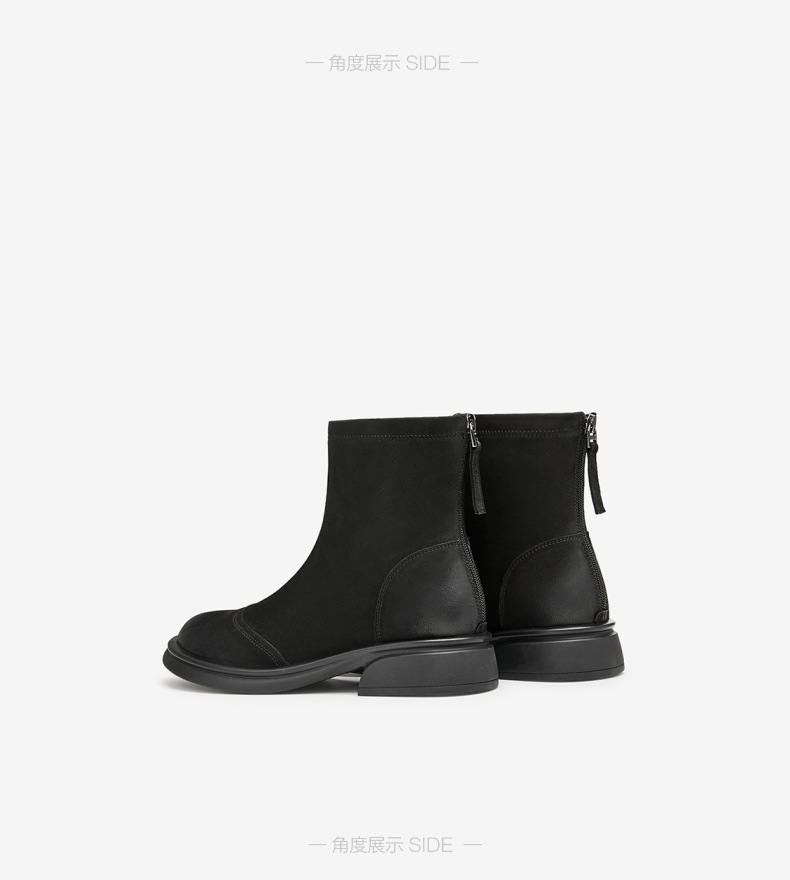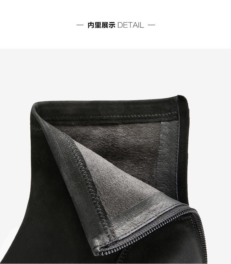 | 鞋底材质:橡胶底 | 靴筒内里材质:织物面料猪皮革 | 内增高:无 | 鞋面材质:羊皮革 | 闭合方式:后拉链 |