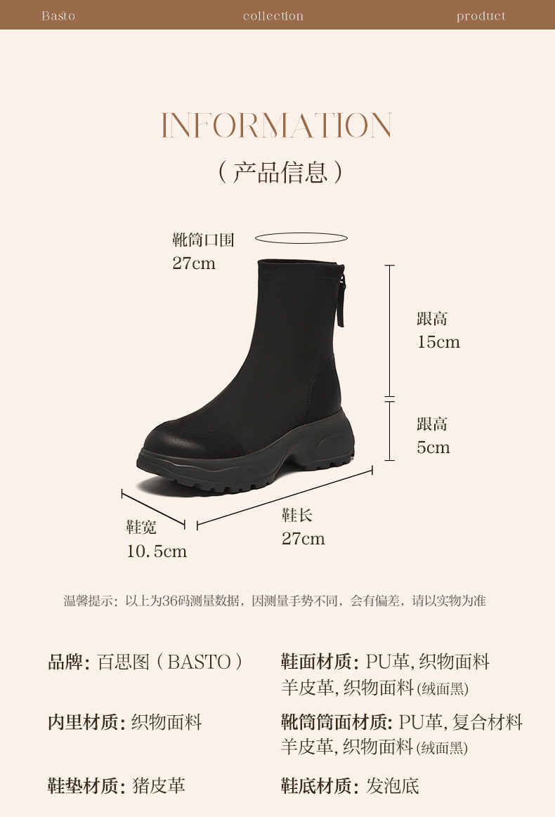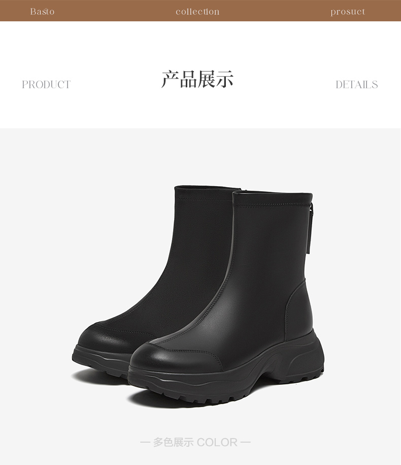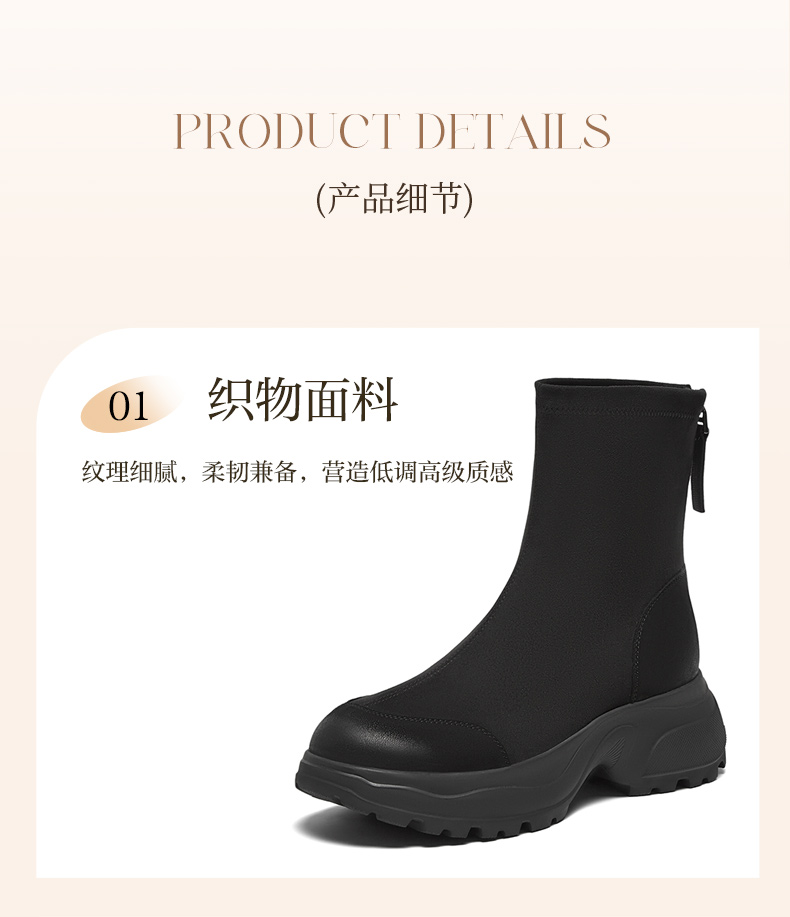 | 鞋类流行款式:时装靴 | 鞋头款式:圆头 | 执行标准:舒适上班鞋Q/LR001-2023 | 跟高范围:中跟鞋(3-5CM) | 鞋面图案:纯色 |