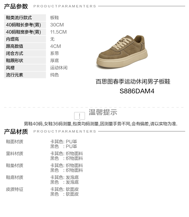 | 40码鞋长参考(男):30CM | 鞋帮:低帮 | 功能科技:防滑 | 鞋底材质:发泡底 | 内增高:无 |