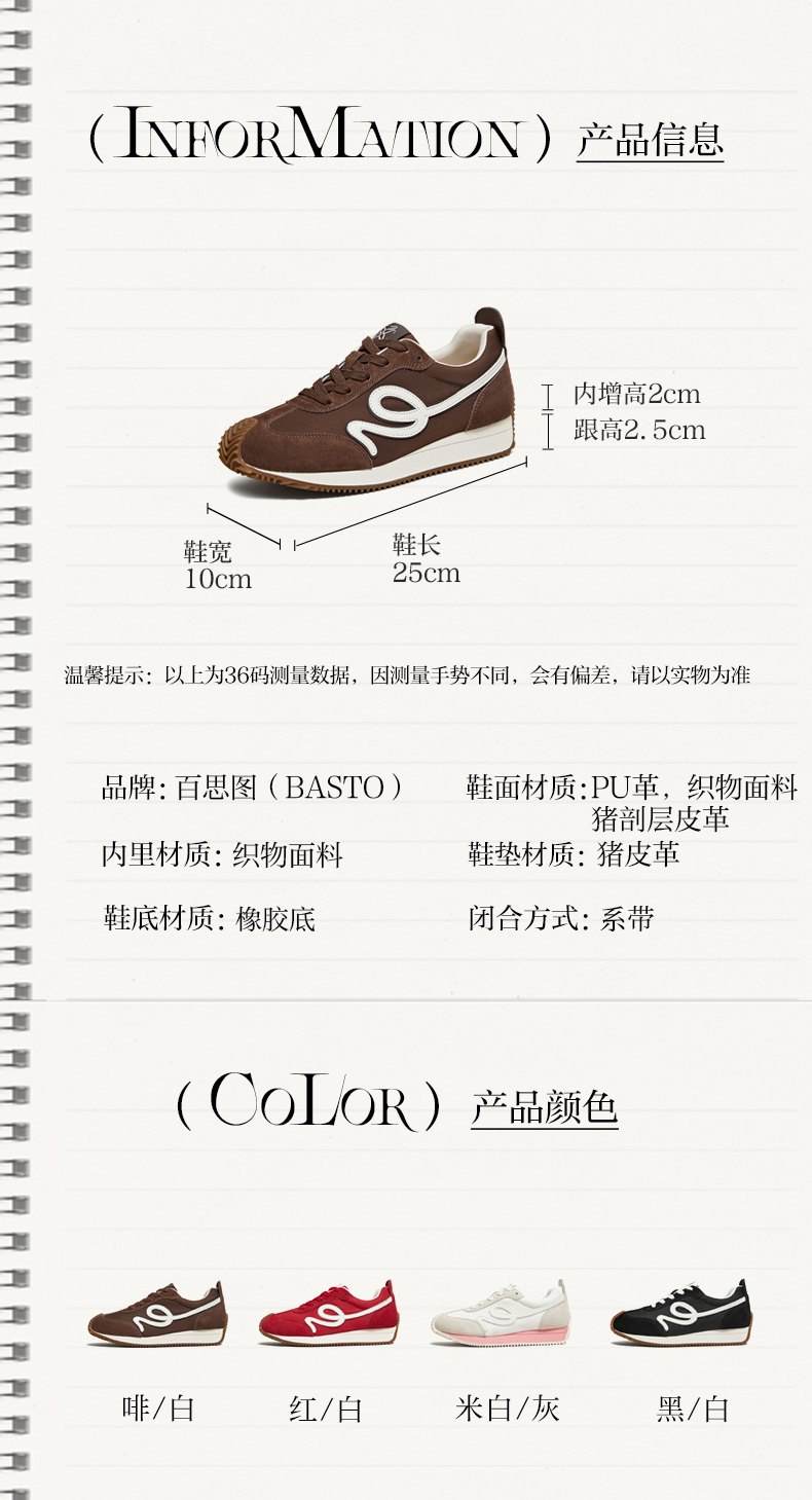 | 鞋帮:低帮 | 鞋底材质:橡胶底 | 内增高:2CM | 鞋面材质:织物面料PU革猪剖层皮革 | 闭合方式:系带 |