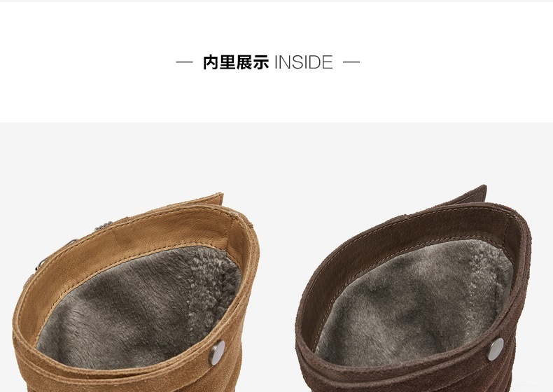| 鞋底材质:橡胶底 | 靴筒内里材质:人造短毛绒 | 内增高:无 | 鞋面材质:牛剖层皮革 | 闭合方式:套脚 |