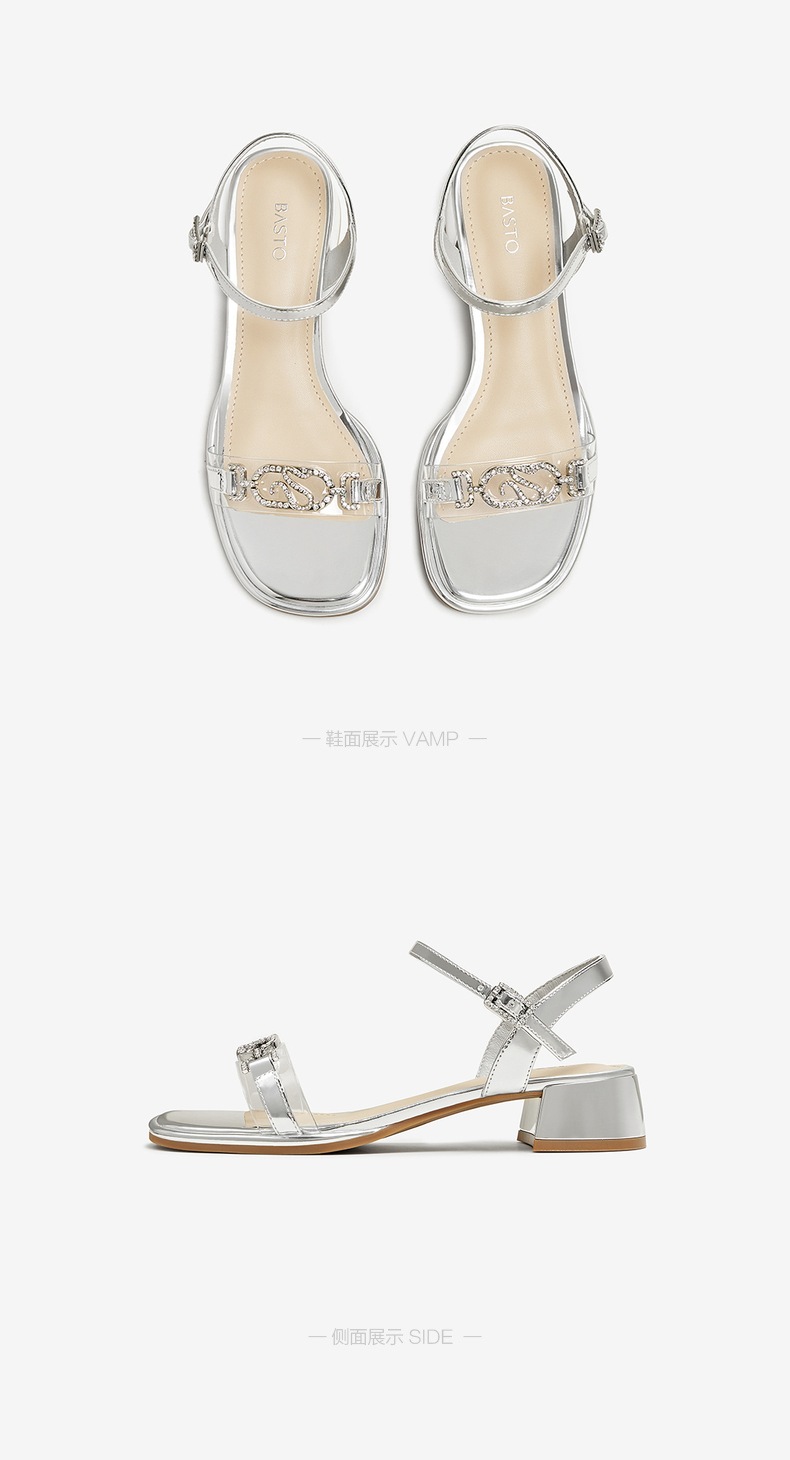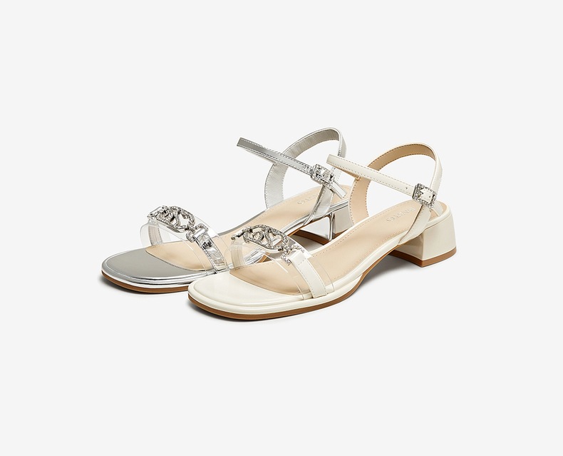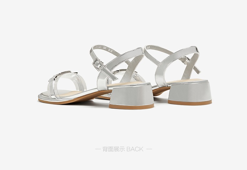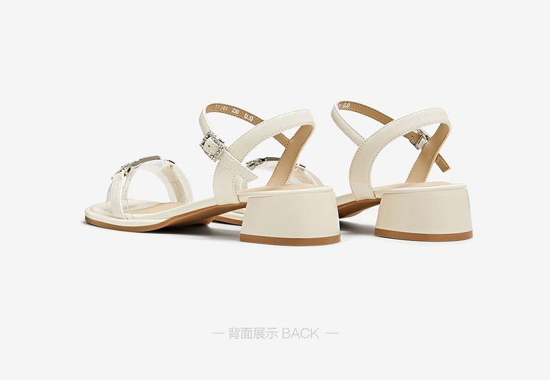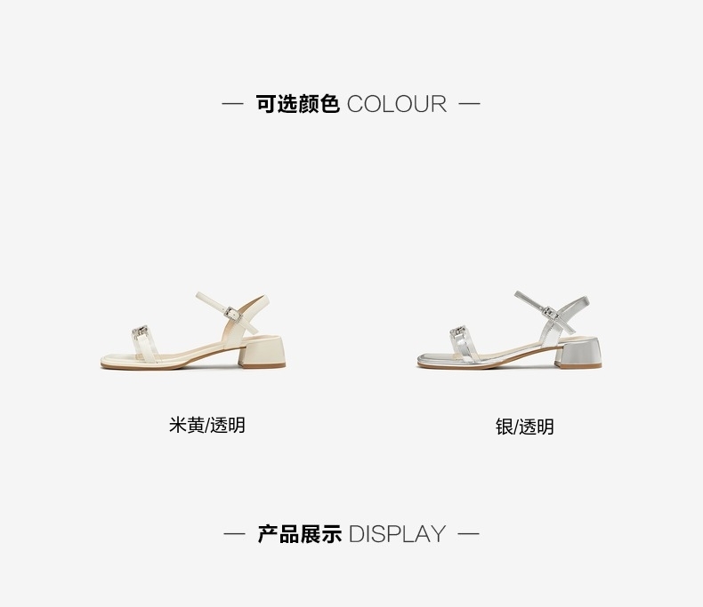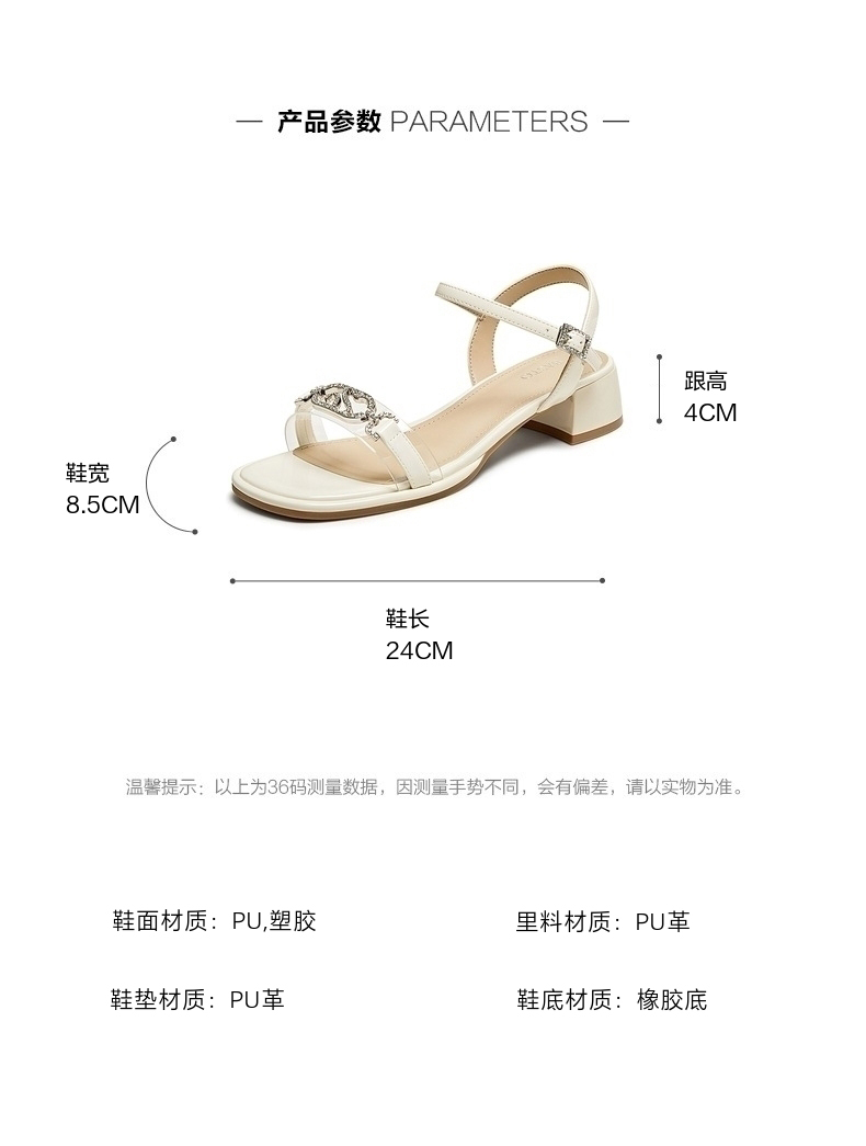 | 鞋类流行款式:凉鞋 | 鞋头款式:露趾 | 执行标准:GB/T22756-2017 | 跟高范围:中跟鞋(3-5CM) | 鞋面图案:纯色 |
