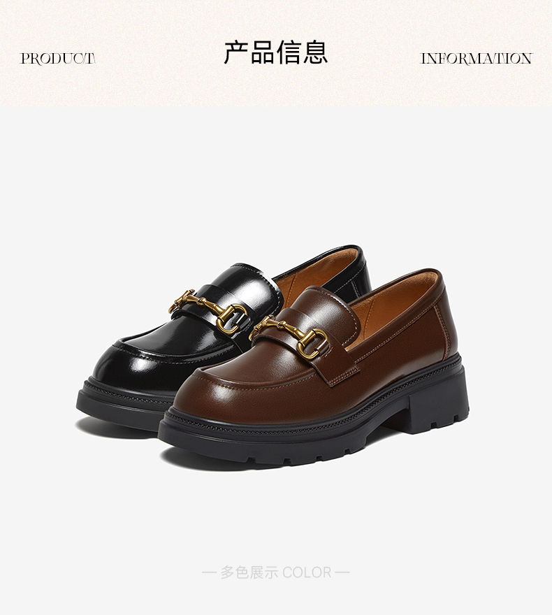 | 配跟:无 | 上市时间:2025年秋季 | 鞋类流行款式:乐福鞋 | 鞋头款式:圆头 | 鞋面图案:纯色 |