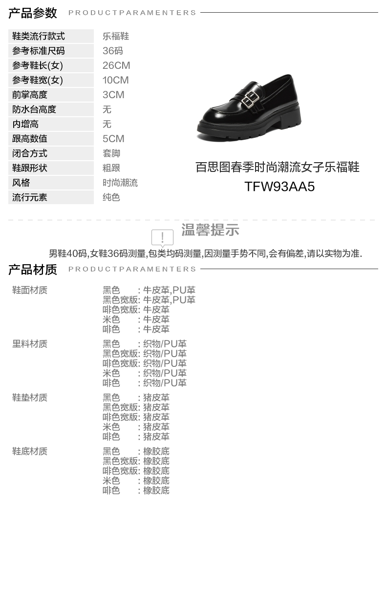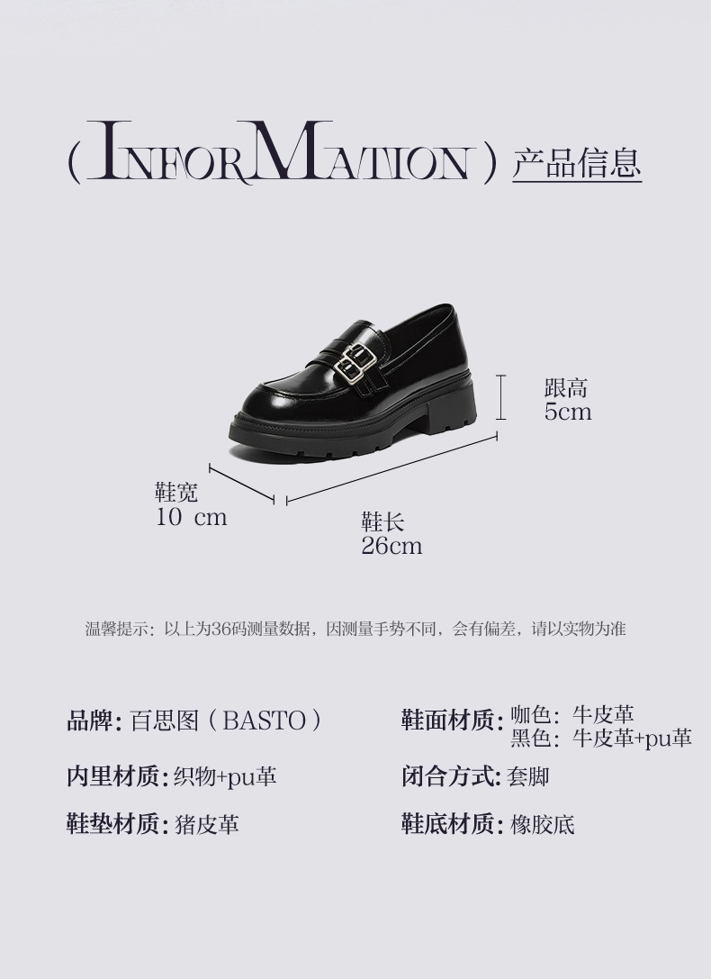 | 制鞋工艺:胶贴皮鞋 | 款式季节:春季 | 鞋垫材质:猪皮革 | 渠道划分:线下同步 | 前掌高度:3CM |