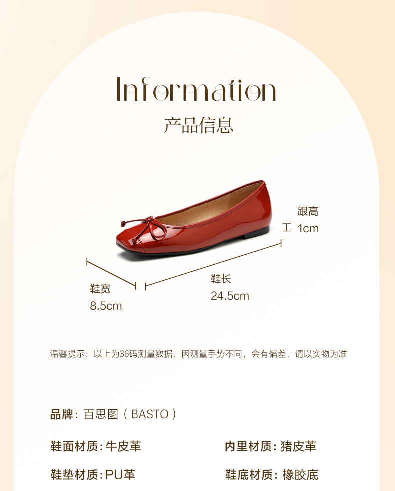 BASTO(百思图),品牌拥有17年历史,秉承优雅、甜美、清新的设计理念,主张“好嫁风”的产品风格,将甜美俏丽的少女情怀融合优雅气质的时尚品味,塑造出唯美优雅、受欢迎的女鞋款式。主打以女性温柔与亲和力为特色的流行时尚产品,糅合雅致又富有亲和力的裸粉色调,淑媛端庄、清新甜美。目前品牌已开设线下门店达1400多家。