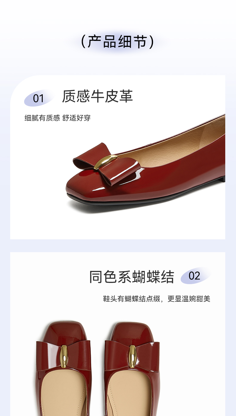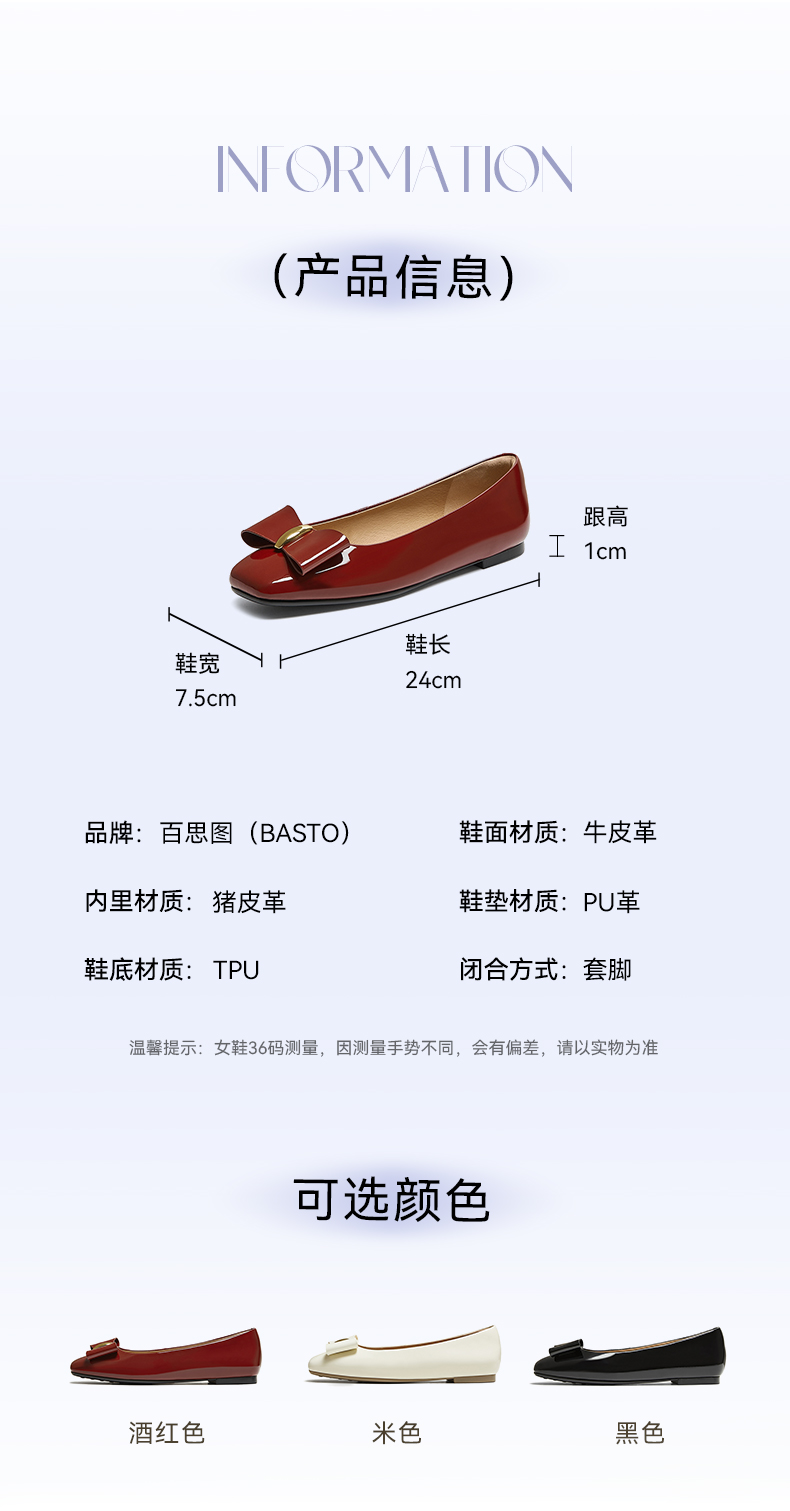 | 鞋面材质:牛皮革 | 流行元素:纯色 | 参考鞋长(女):24CM | 参考鞋宽(女):7.5CM | 闭合方式:套脚 |