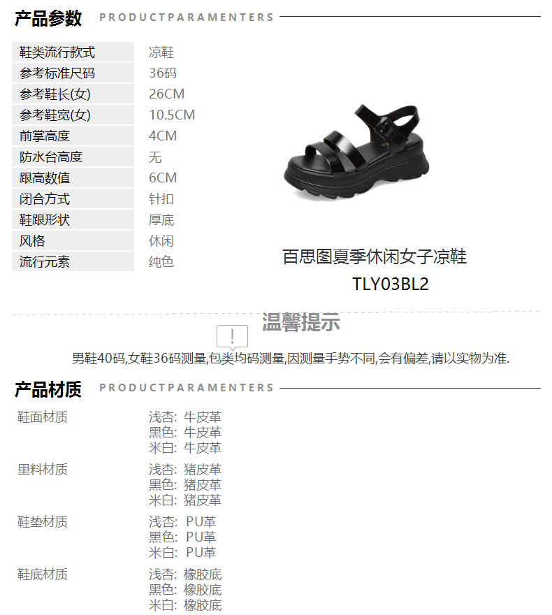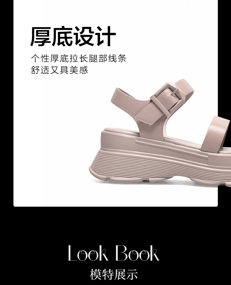 | 鞋头款式:露趾 | 鞋面图案:纯色 | 鞋跟形状:厚底 | 参考鞋长(女):26CM | 参考鞋宽(女):10.5CM |