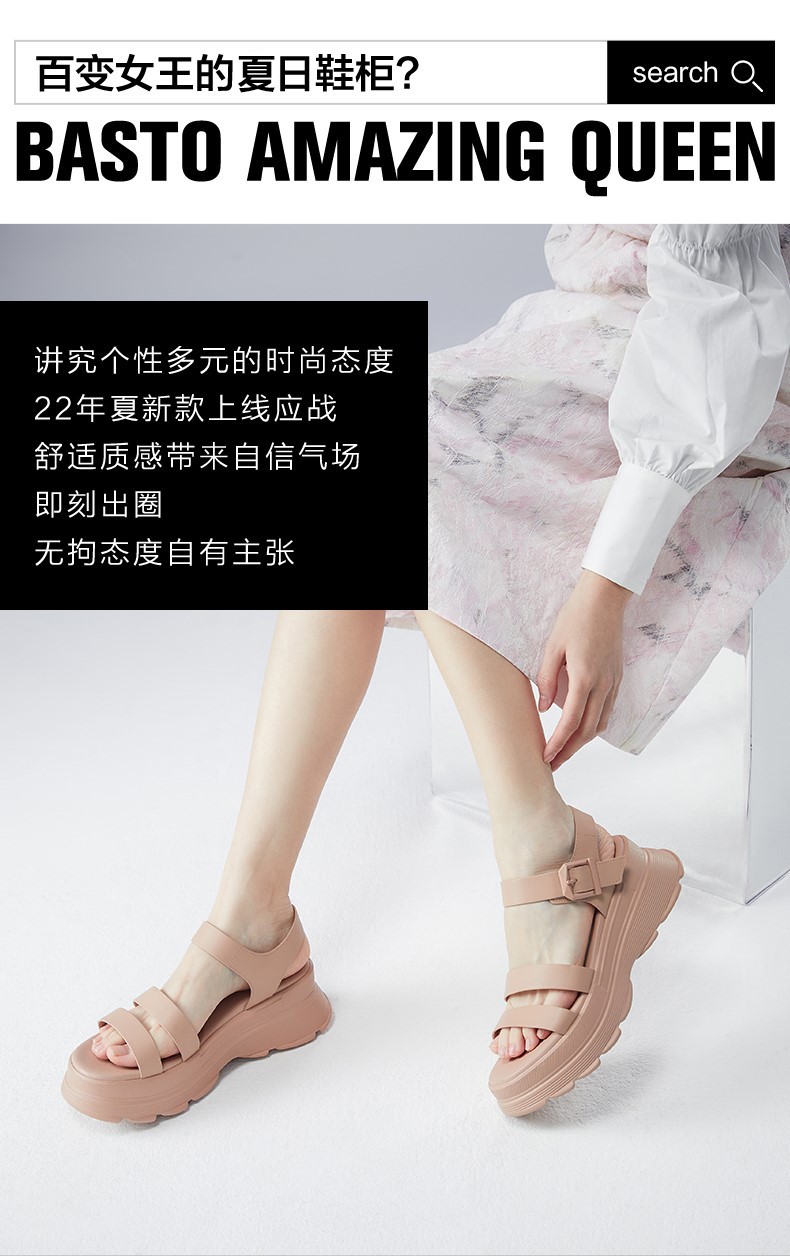 BASTO(百思图),品牌拥有17年历史,秉承优雅、甜美、清新的设计理念,主张“好嫁风”的产品风格,将甜美俏丽的少女情怀融合优雅气质的时尚品味,塑造出唯美优雅、受欢迎的女鞋款式。主打以女性温柔与亲和力为特色的流行时尚产品,糅合雅致又富有亲和力的裸粉色调,淑媛端庄、清新甜美。目前品牌已开设线下门店达1400多家。