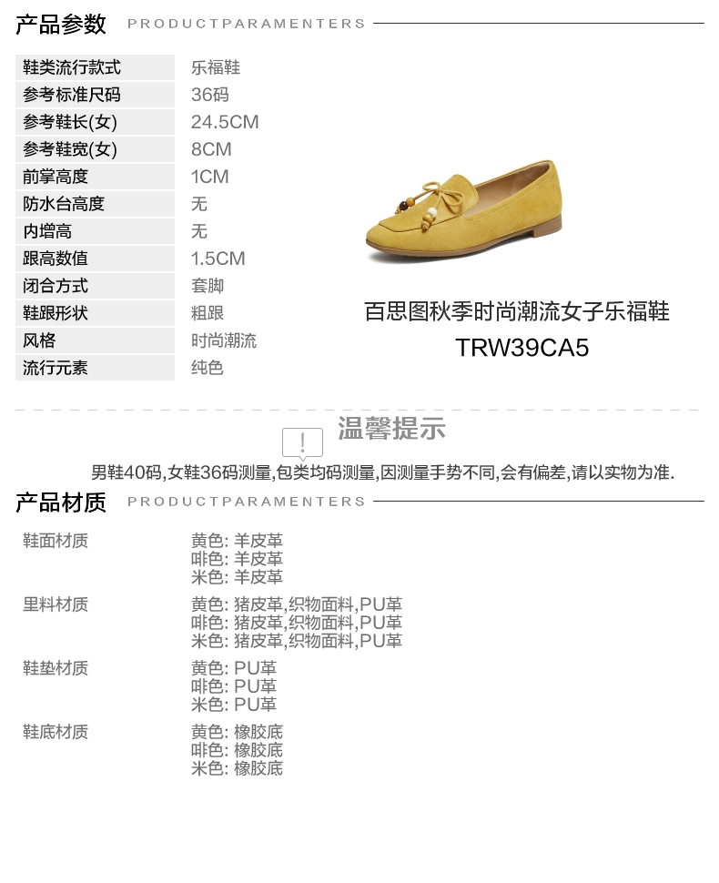 | 配跟:无 | 上市时间:2025年秋季 | 鞋类流行款式:乐福鞋 | 鞋头款式:圆头 | 鞋面图案:纯色 |