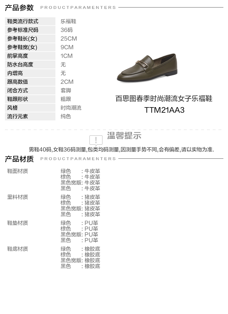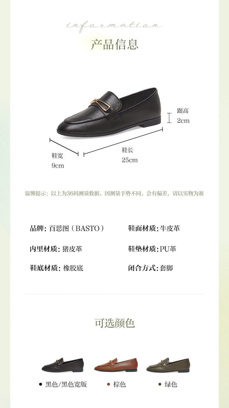 | 配跟:无 | 上市时间:2023年春季 | 鞋类流行款式:乐福鞋 | 鞋头款式:圆头 | 鞋面图案:纯色 |