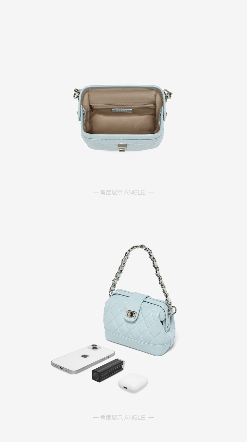 | 包的规格:W210*H90*D140MM | 内部结构:拉链暗袋 | 背带方式:单肩/斜挎 | 风格:OL通勤 | 色系:蓝色 |