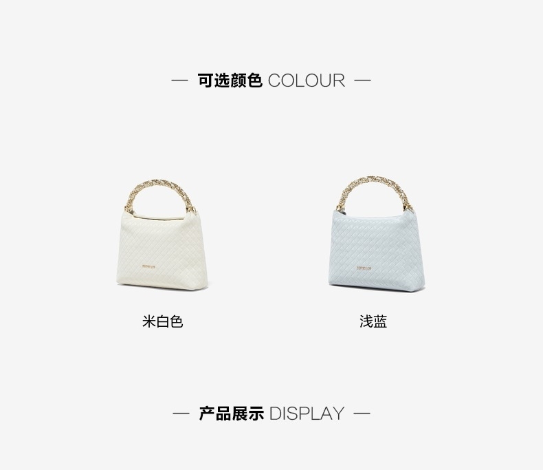 | 包的规格:W200*H60*D145MM | 内部结构:拉链暗袋 | 背带方式:单肩/斜挎 | 风格:OL通勤 | 色系:米白 |