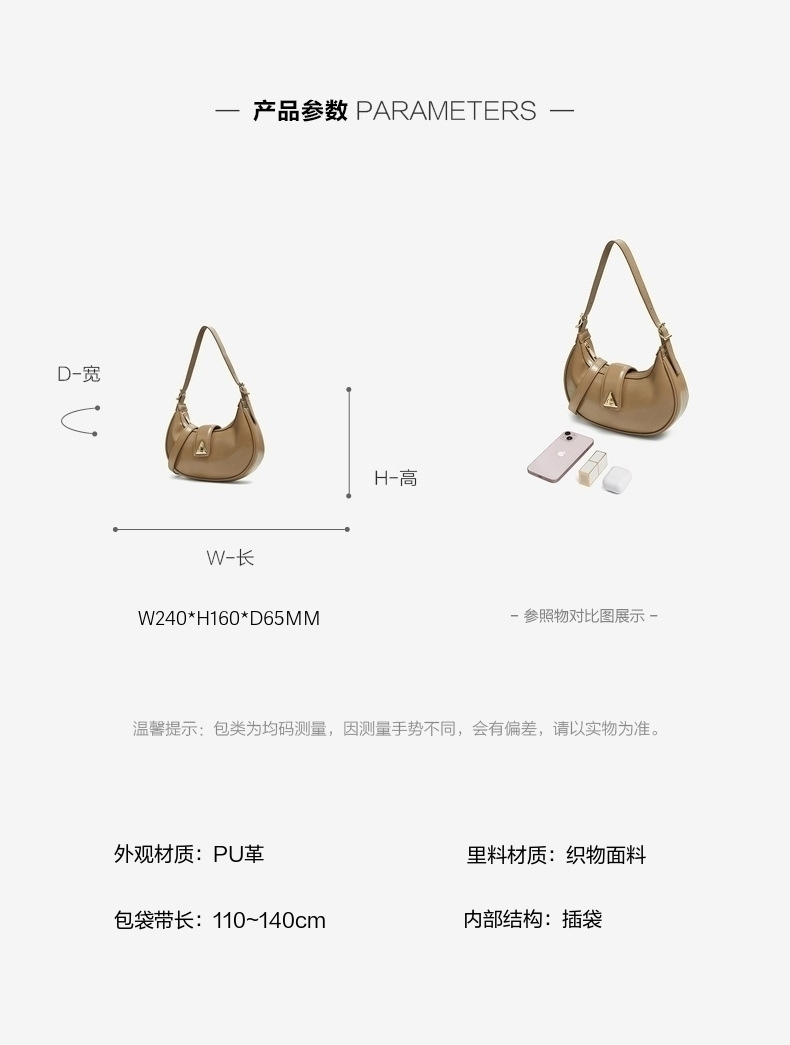 | 包的规格:W240*H160*D65MM | 内部结构:插袋 | 背带方式:单肩/斜挎 | 风格:OL通勤 | 色系:咖啡色 |