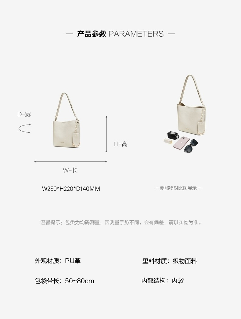 | 肩带样式:1根 | 手柄:无 | 带长:50~80cm | 流行元素:纯色 | 可否折叠:否 |